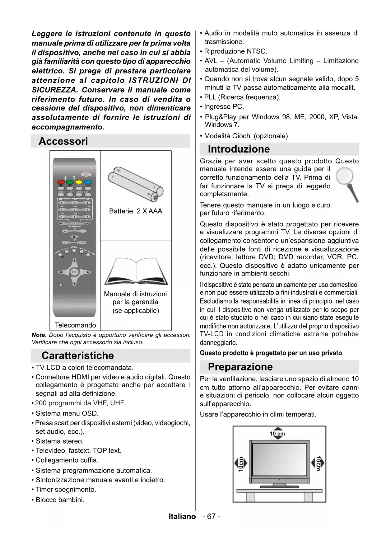 Note: In certi casi i segnali della TV LCD sono non essere ricevuti e visualizzati correttamente. Il problema cui è essere causato dall'incompatibilità con gli standard dei dispositivi di ingresso (lettore DVD, decoder digitale, ecc). Se si dovessero verificare tali problemi, contattare il rivenditore e il produttore dei dispositivi.