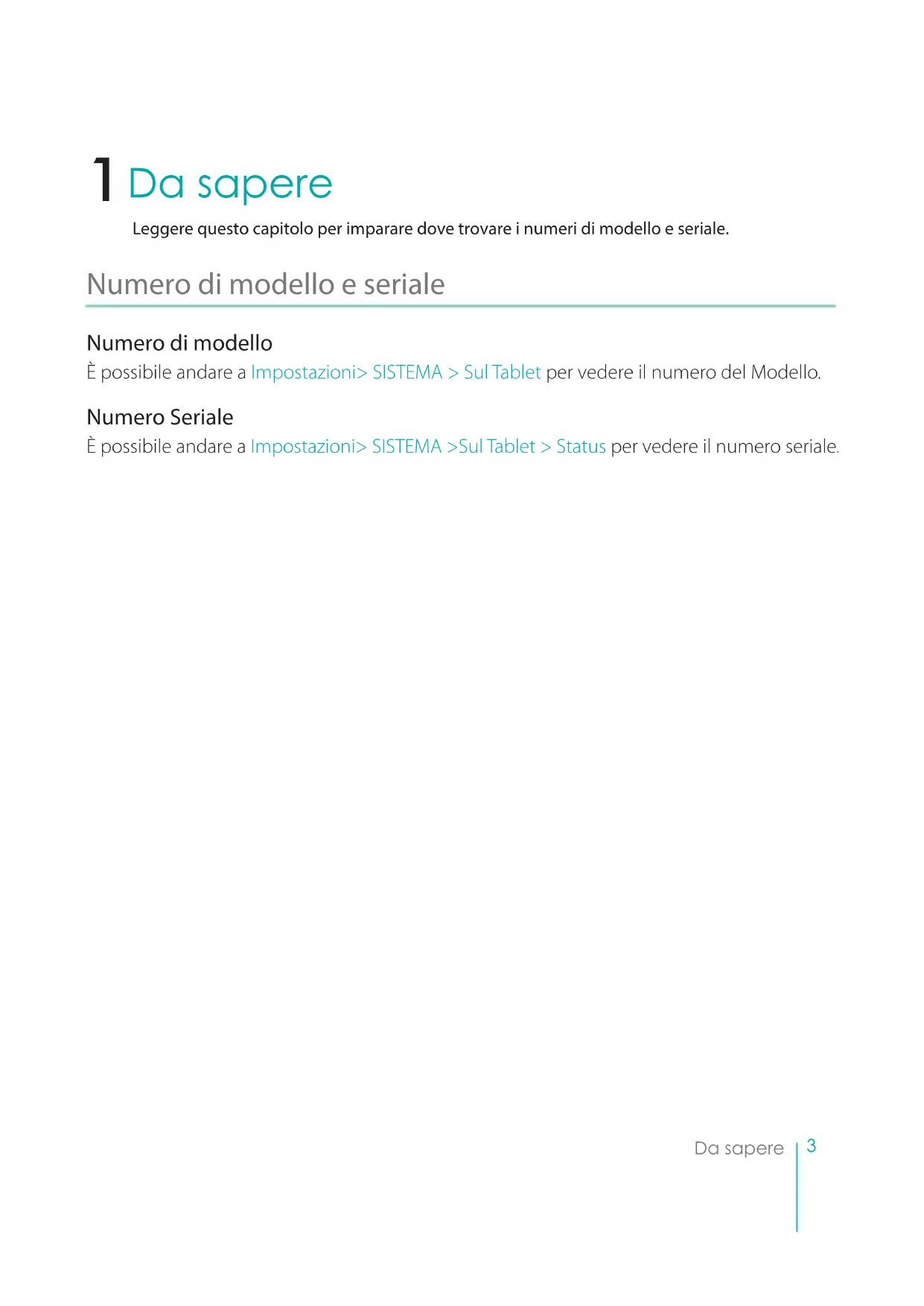È possibile andare a Impostazioni> SISTEMA >Sul Tablet > Status per vedere il numero seriale.