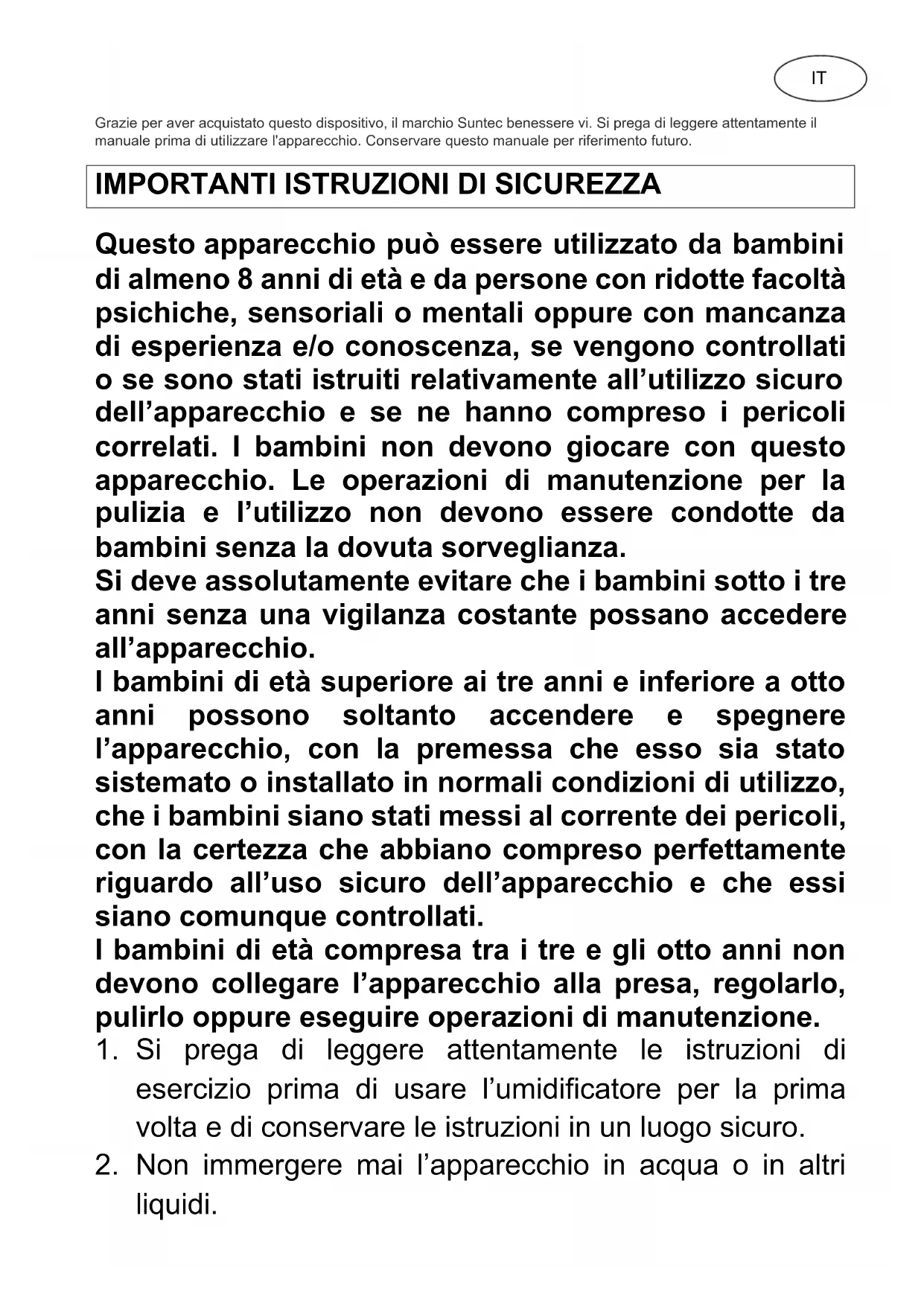 esercizio prima di usare l’umidificatore per la prima volta e di conservare le istruzioni in un luogo sicuro.