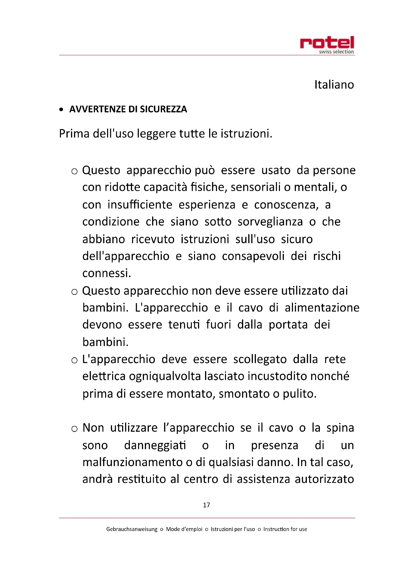 - Avvertenze di sicurezza 17