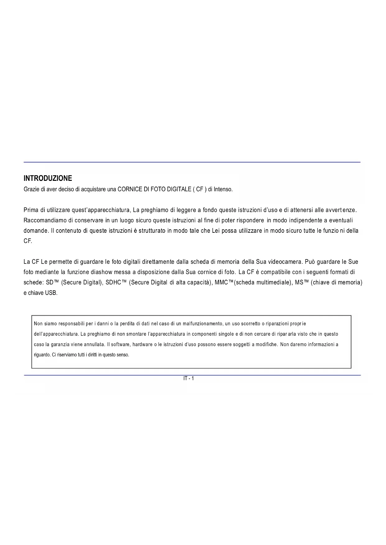 Grazie di aver decidso di acquistare una CORNICE DI FOTO DIGITALE (CF) di Intenso.