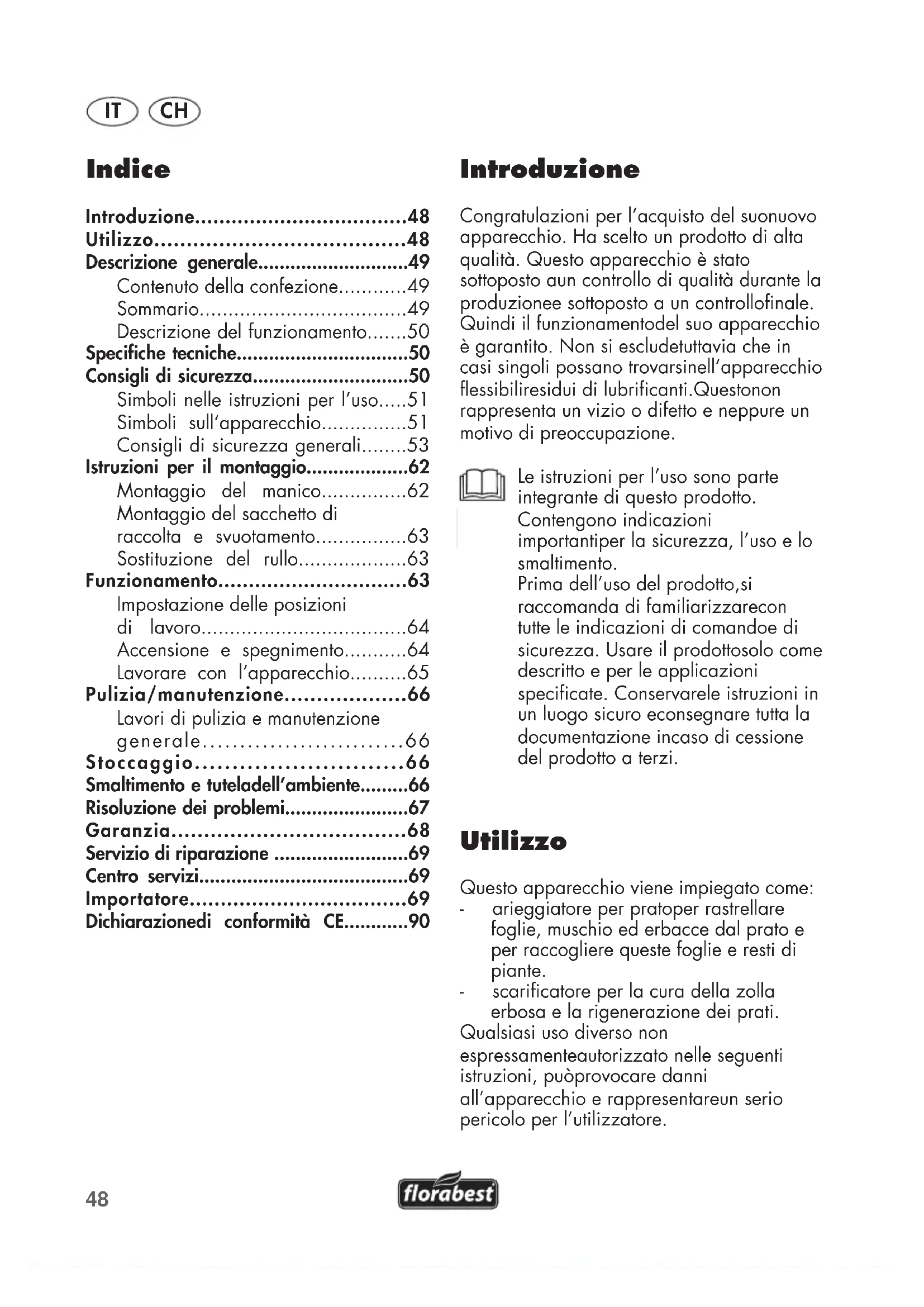 CHITGaranzia Gentile cliente, su questo apparecchio Le viene concessa una garanzia di 3 anni a partire dalla data di acquisto. In caso di difetti di questo apparecchio può avanzare diritti legali nei confronti del venditore del prodotto. Tali diritti legali non vengono limitati dalla nostra garanzia qui di seguito esposta. Condizioni di garanzia Il termine di garanzia inizia con la data di acquisto. La preghiamo di conservare in un luogo sicuro lo scontrino fiscale originale. Questo documento viene richiesto come prova d’acquisto. Qualora subentrasse un difetto di materiale o di fabbricazione entro tre anni a partire dalla data di acquisto di questo apparecchio, l’apparecchio sarà da noi riparato o sostituito – a nostra discrezione - gratuitamente. Questa prestazione di garanzia presuppone che venga presentato entro il termine di tre anni l’apparecchio difettoso e la prova d’acquisto (scontrino fiscale) e descritto brevemente per iscritto in che cosa consiste il difetto e quando si è verificato. Se il difetto è coperto dalla nostra garanzia, riceverà il prodotto riparato oppure un prodotto nuovo. Con la riparazione o la sostituzione del prodotto non inizia un nuovo periodo di garanzia. Tempo di garanzia e diritti legali per vizi della cosa Il periodo di garanzia non viene prolungato. Questo vale anche per parti sostituite e riparate. Difetti e vizi presenti già al momento dell’acquisto devono essere segnalati immediatamente dopo la rimozione dall’imballaggio. Le riparazioni dopo il periodo di garanzia sono a pagamento. Copertura della garanzia L’apparecchio è stato prodotto accuratamente secondo severe direttive di qualità e controllato con coscienza prima della consegna. La prestazione in garanzia vale per difetti di materiale o di fabbricazione. Questa garanzia non si estende ai componenti dell’apparecchio che sono soggetti a normale usura e che quindi possono essere considerati come componenti soggetti a usura (ad es. cilindro aeratore, cilindro scarificatore o cinghie dentate) oppure per danni delle parti fragili (ad es. interruttori, accumulatori o componenti in vetro). Questa garanzia decade se il prodotto è stato danneggiato, non usato correttamente o non sottoposto a manutenzione. Per un uso corretto del prodotto devono essere osservate tutte le indicazioni riportate nelle istruzioni per l’uso. Destinazioni d’uso e azioni sconsigliate nelle istruzioni per l’uso o delle quali si viene avvertiti, sono tassativamente da evitare. Il prodotto è destinato esclusivamente a uso privato e non commerciale. In caso di uso improprio, uso della forza e interventi non effettuati dalla nostra filiale di assistenza tecnica autorizzata, la garanzia decade. Procedura nel caso di garanzia Per garantire una rapida elaborazione della sua pratica, la preghiamo di seguire le seguenti indicazioni: