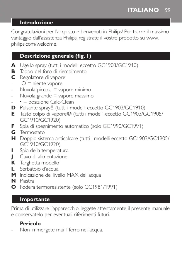 GC1910/02 - Ferro da stiro PHILIPS - Manuale utente e istruzioni gratuiti