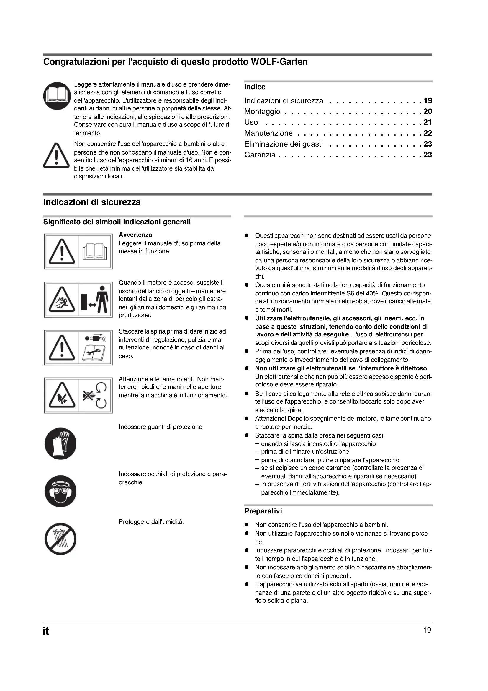 Indicazioni di sicurezza 19
