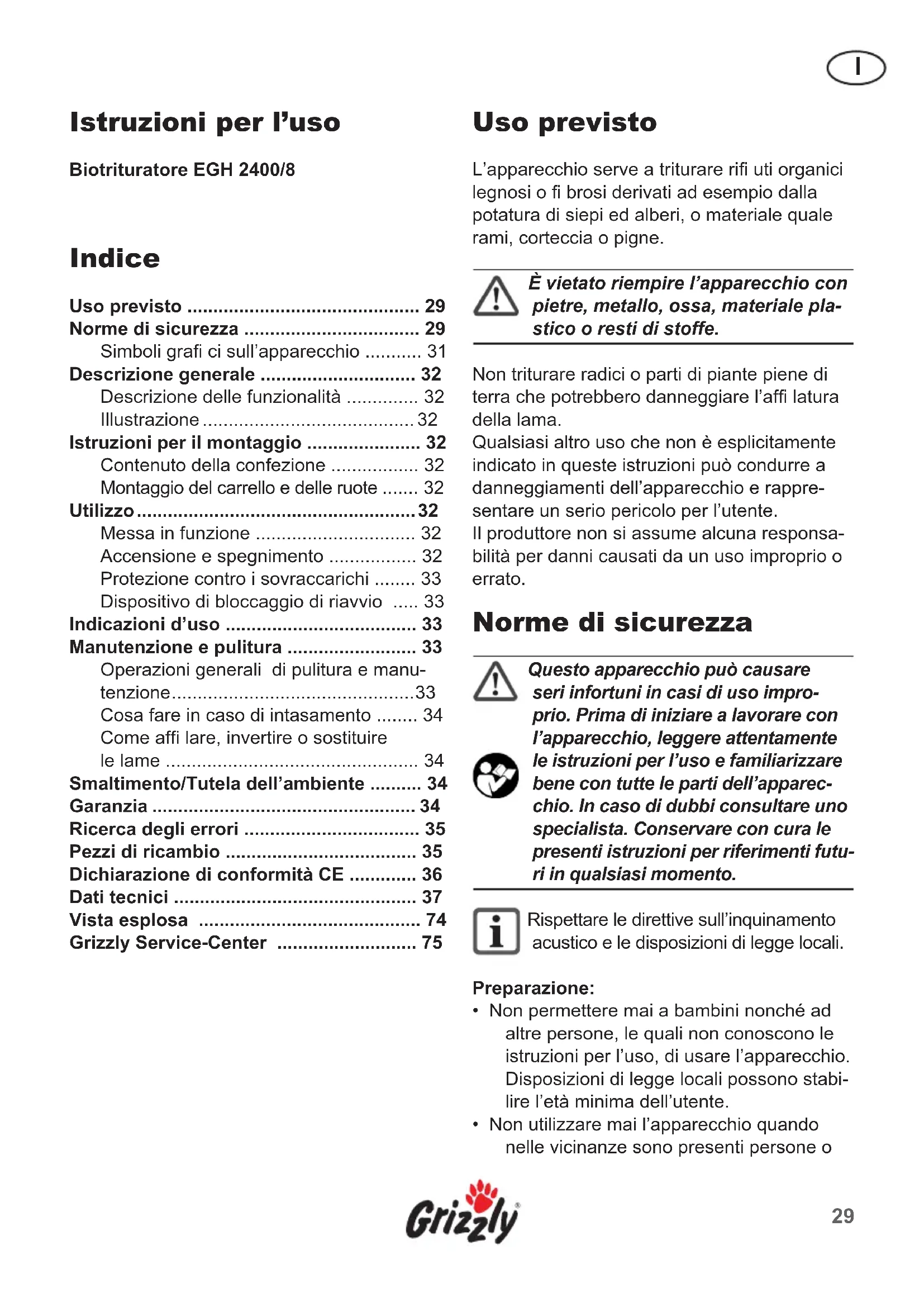EGH 24008 - Trituratore meccanico Grizzly - Manuale utente e istruzioni gratuiti