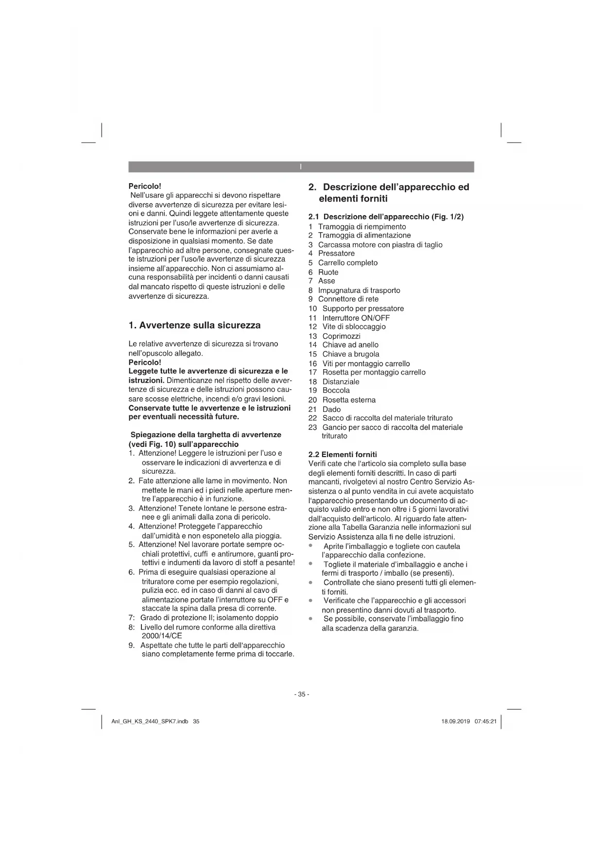 Scarica le istruzioni per il tuo Trituratore meccanico in formato PDF gratuitamente! Trova il tuo manuale GHKS 2440 - EINHELL e riprendi in mano il tuo dispositivo elettronico. In questa pagina sono pubblicati tutti i documenti necessari per l'utilizzo del tuo dispositivo. GHKS 2440 del marchio EINHELL.