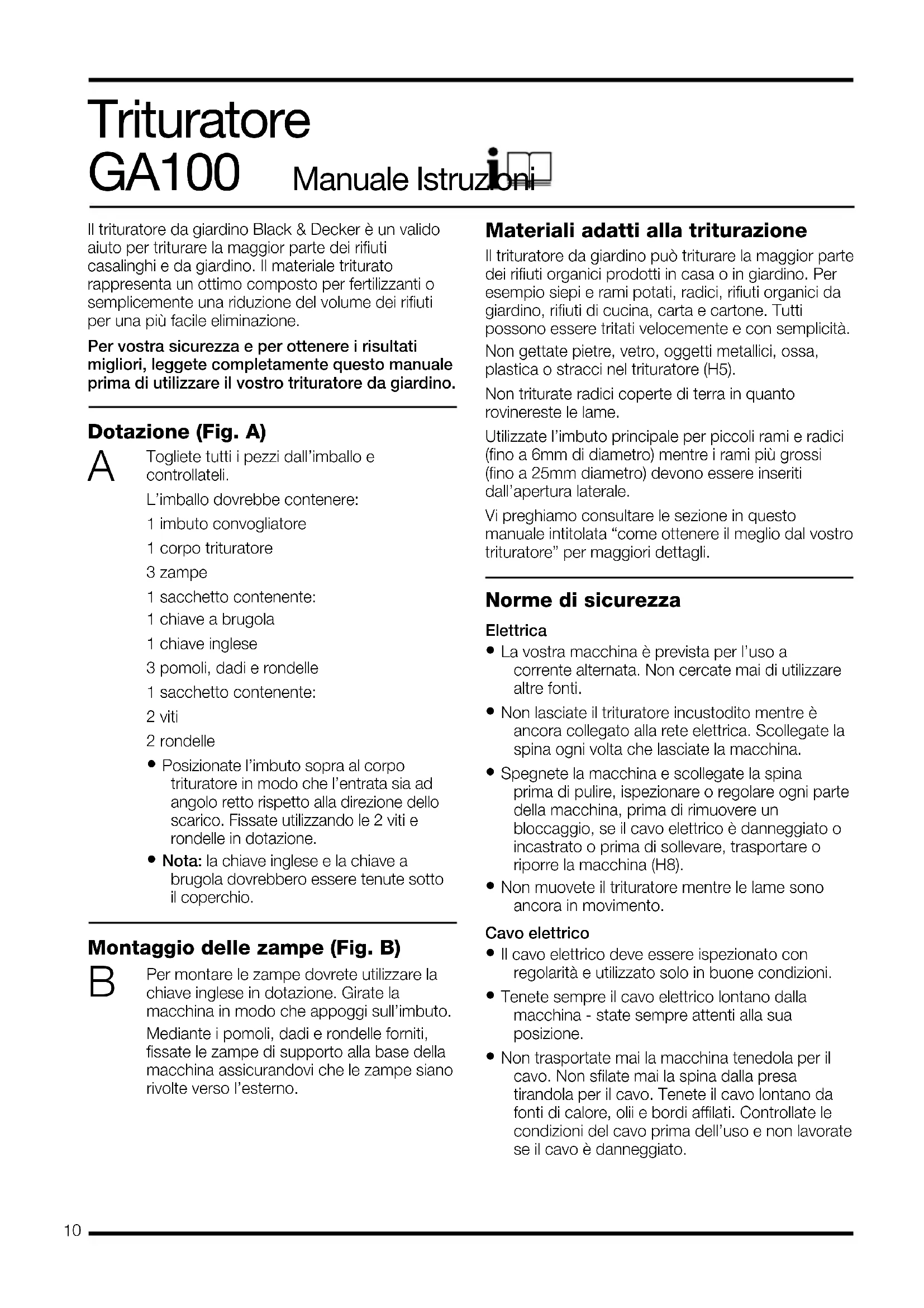 Scarica le istruzioni per il tuo Trituratore meccanico in formato PDF gratuitamente! Trova il tuo manuale GA100 - BLACK & DECKER e riprendi in mano il tuo dispositivo elettronico. In questa pagina sono pubblicati tutti i documenti necessari per l'utilizzo del tuo dispositivo. GA100 del marchio BLACK & DECKER.