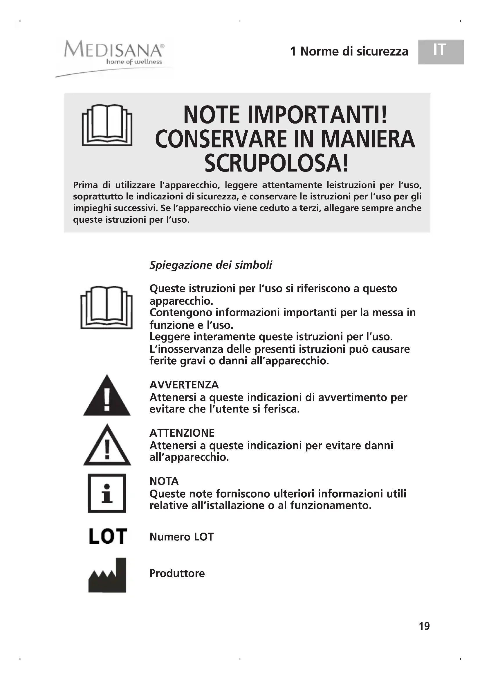 - I prodotti MEDISANA hanno una garanzia di tre anni a partire dalla data di vendita. La data di acquisto deve essere comprovata in caso di garanzia dalla ricevuta di acquisto o dalla fattura.