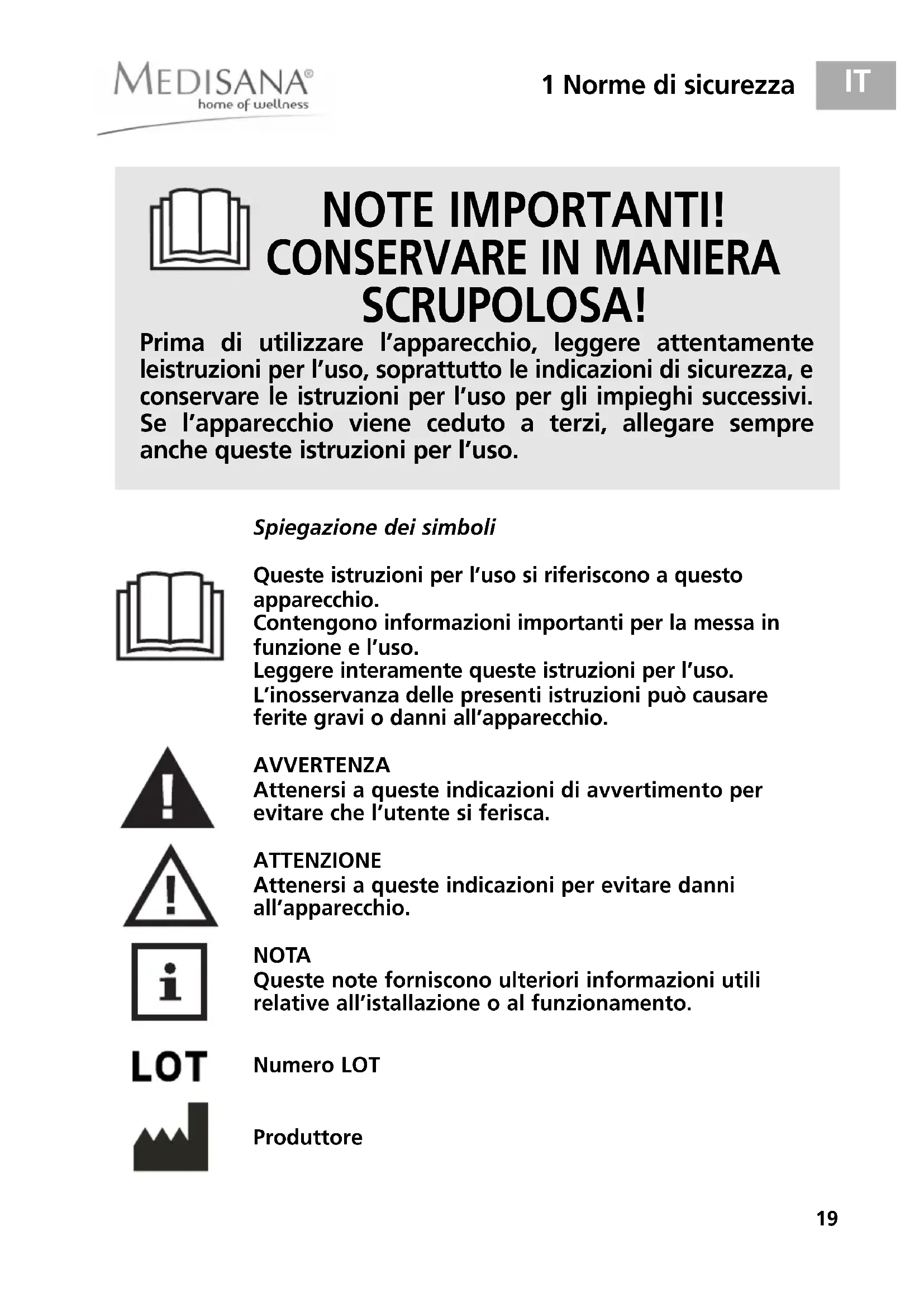 - I prodotti MEDISANA hanno una garanzia di tre anni a partire nella data di vendita. La data di acquisto deve essere comprovata in caso di garanzia alla ricevuta di acquisito o della fattura.