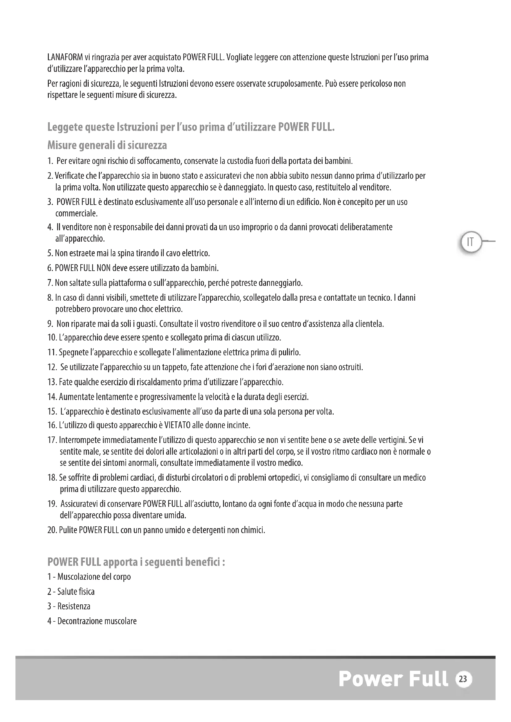 Power Full 23IT Per approfittare al massimo di POWER FULL, fate attenzione ai punti seguenti :