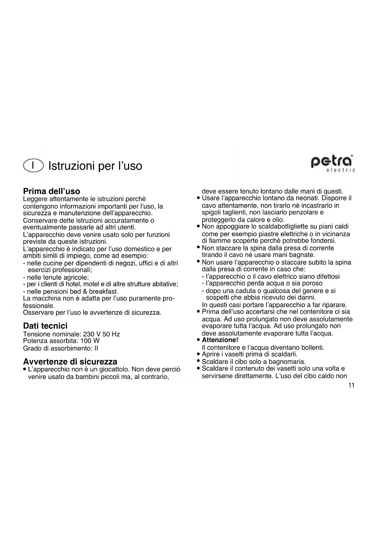 BF1 - Scalda biberon Petra Electric - Manuale utente e istruzioni gratuiti