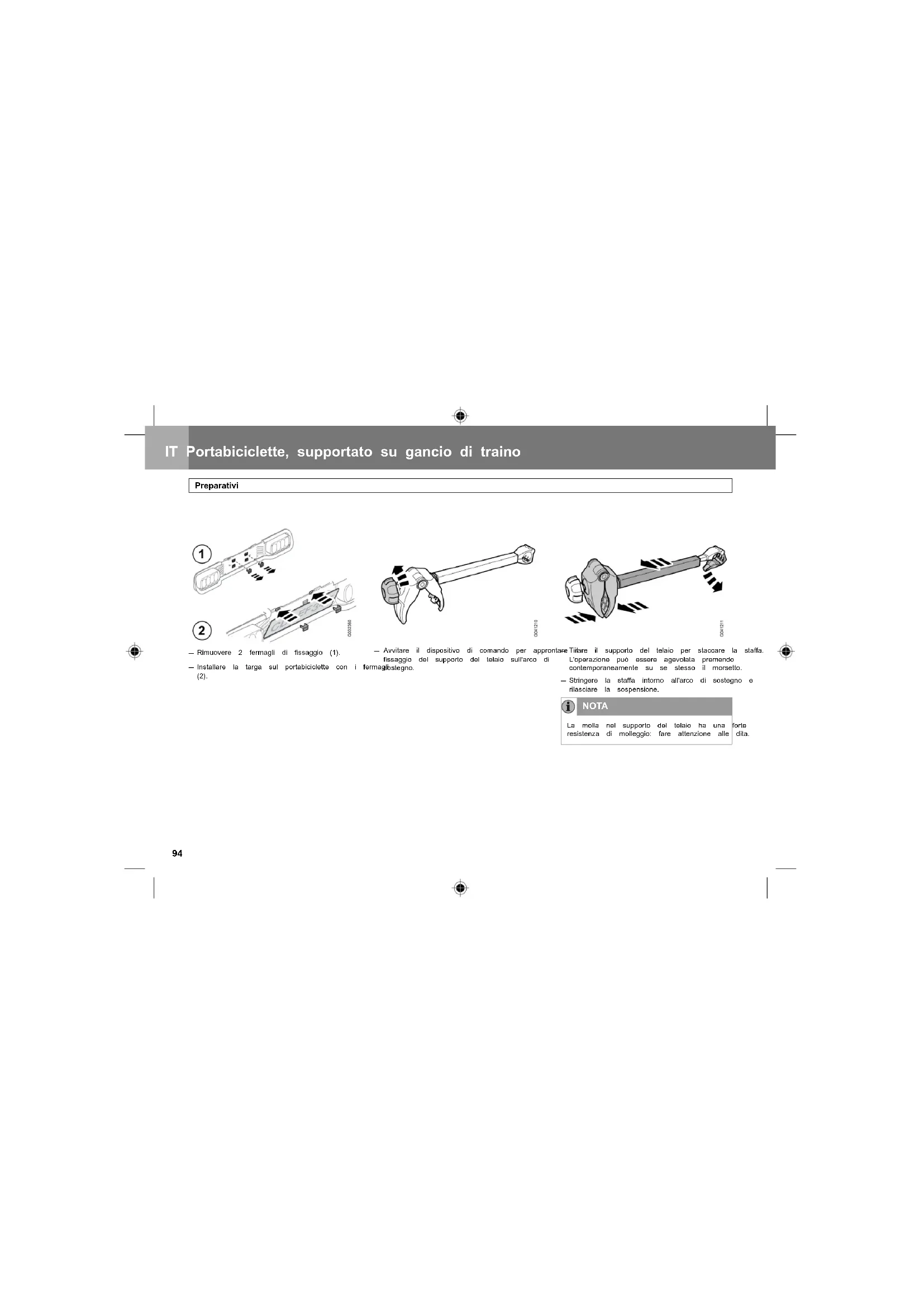 Controllare il simbolo sulla staffa di bloccaggio. IT Portabiciclette, supportato su gancio di traino Preparativi