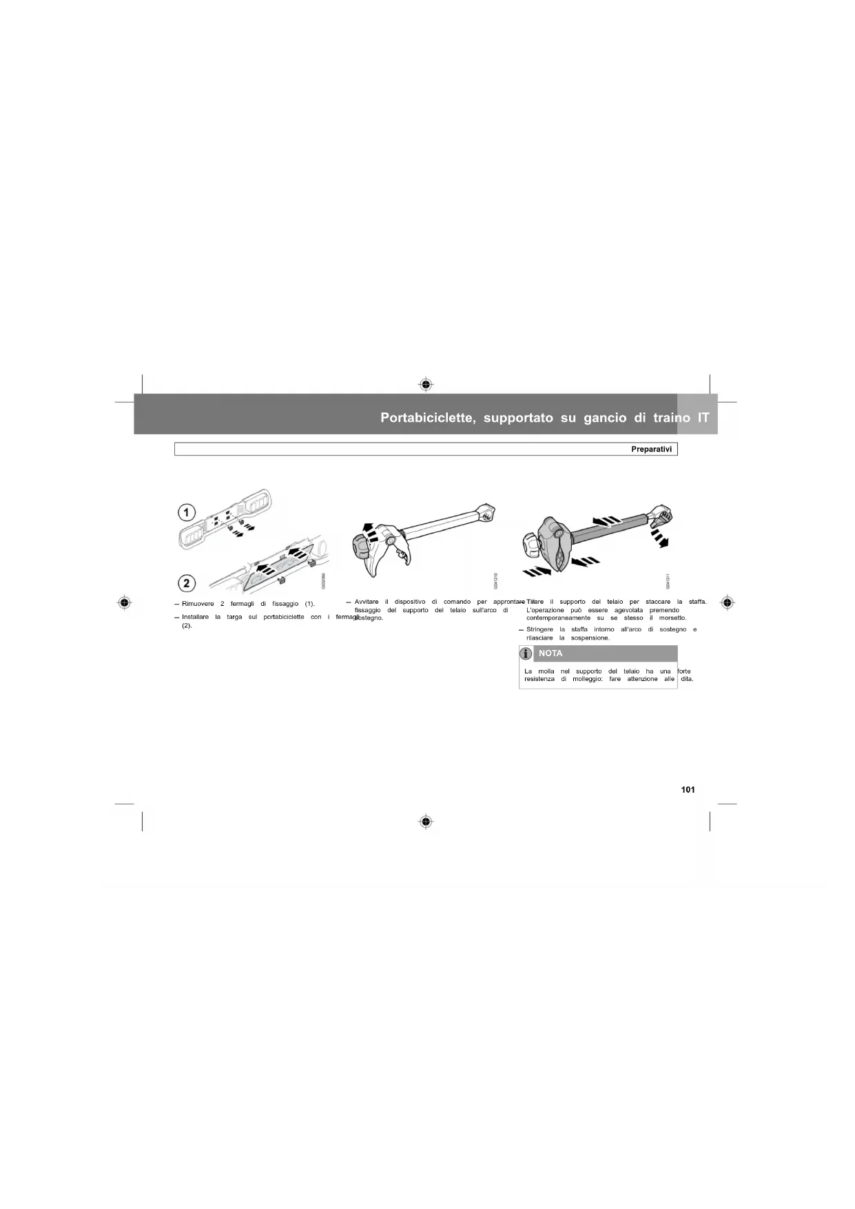 Controllare il simbolo sulla staffa di bloccaggio. Portabiciclette, supportato su gancio di traino IT Preparativi