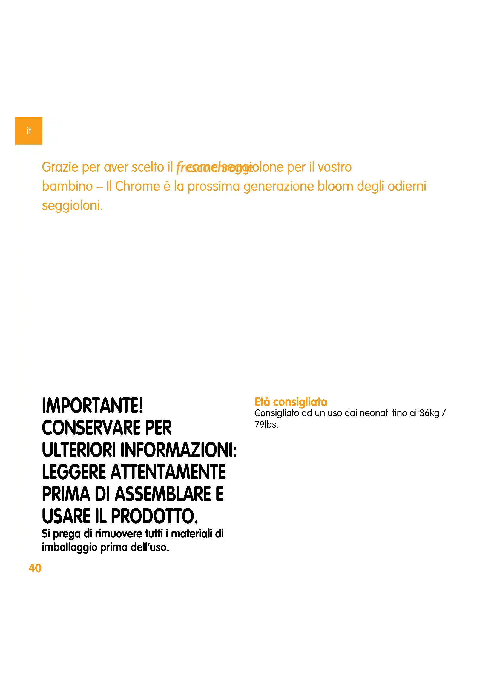 Grazie per aver scelto il freome seggiolone per il vostro bambino - Il Chrome è la prossima generazione bloom degli odieri seglioloni.