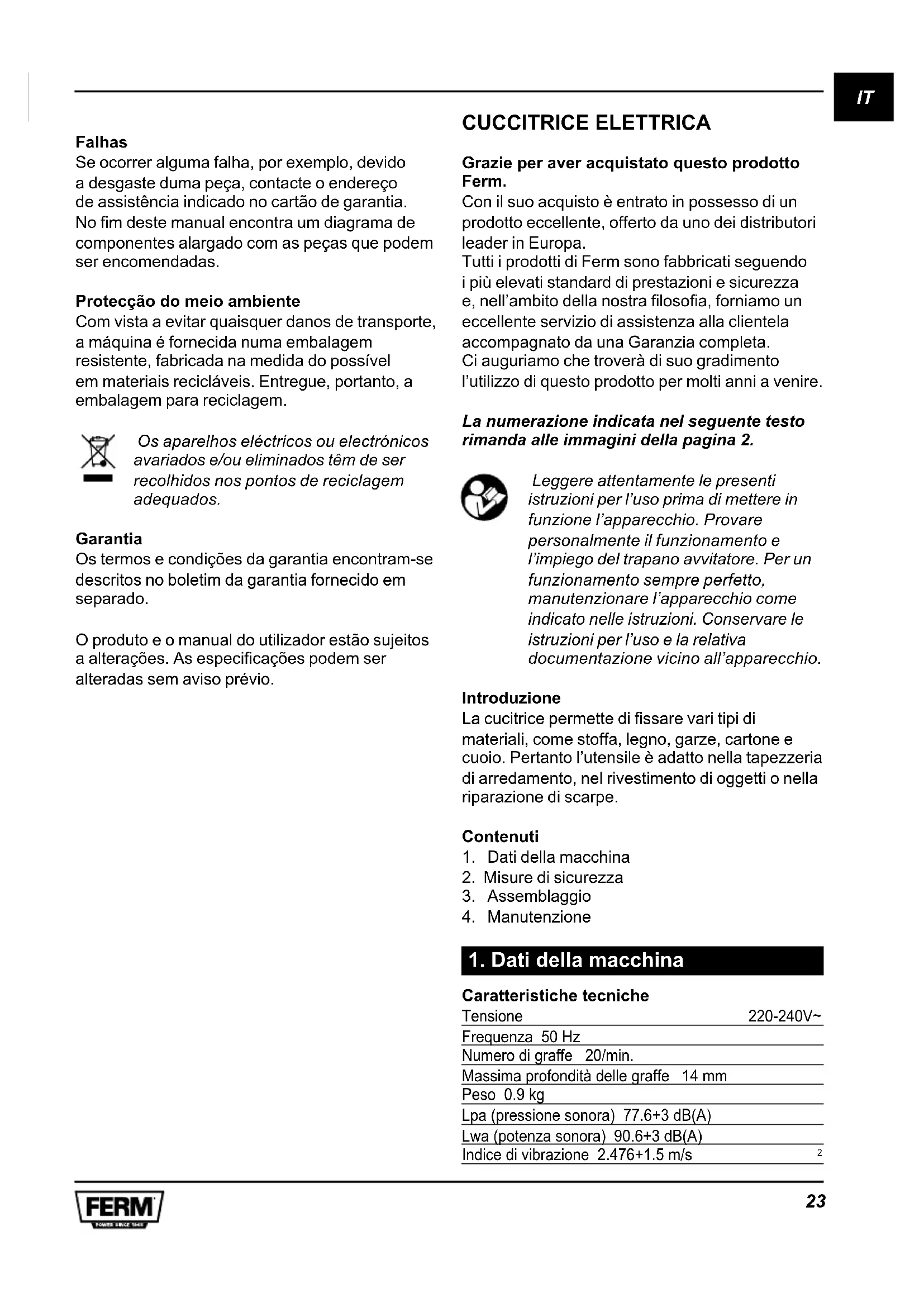 Tutti i prodotti di Ferm sono fabbricati seguendo i più elevati standard di prestazioni e sicurezza e, nell'ambito della nostra filosofia, forniamo un eccellente servizio di assistenza alla clientela accompagnato da una Garanzia completa. Ci auguriamo che troverà di suo gradimento l'utilizzo di questo prodotto per molti anni a venire.