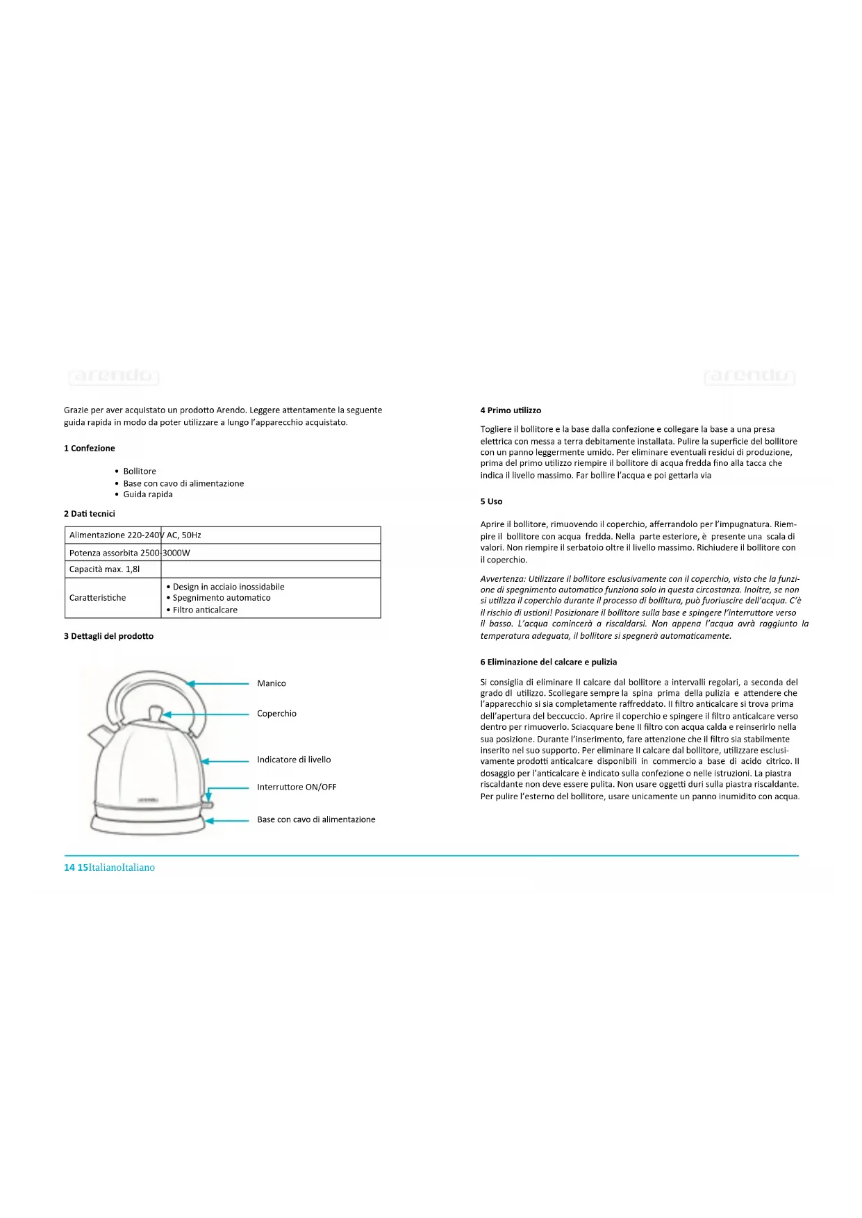 WBA380 - Bollitore Arendo - Manuale utente e istruzioni gratuiti