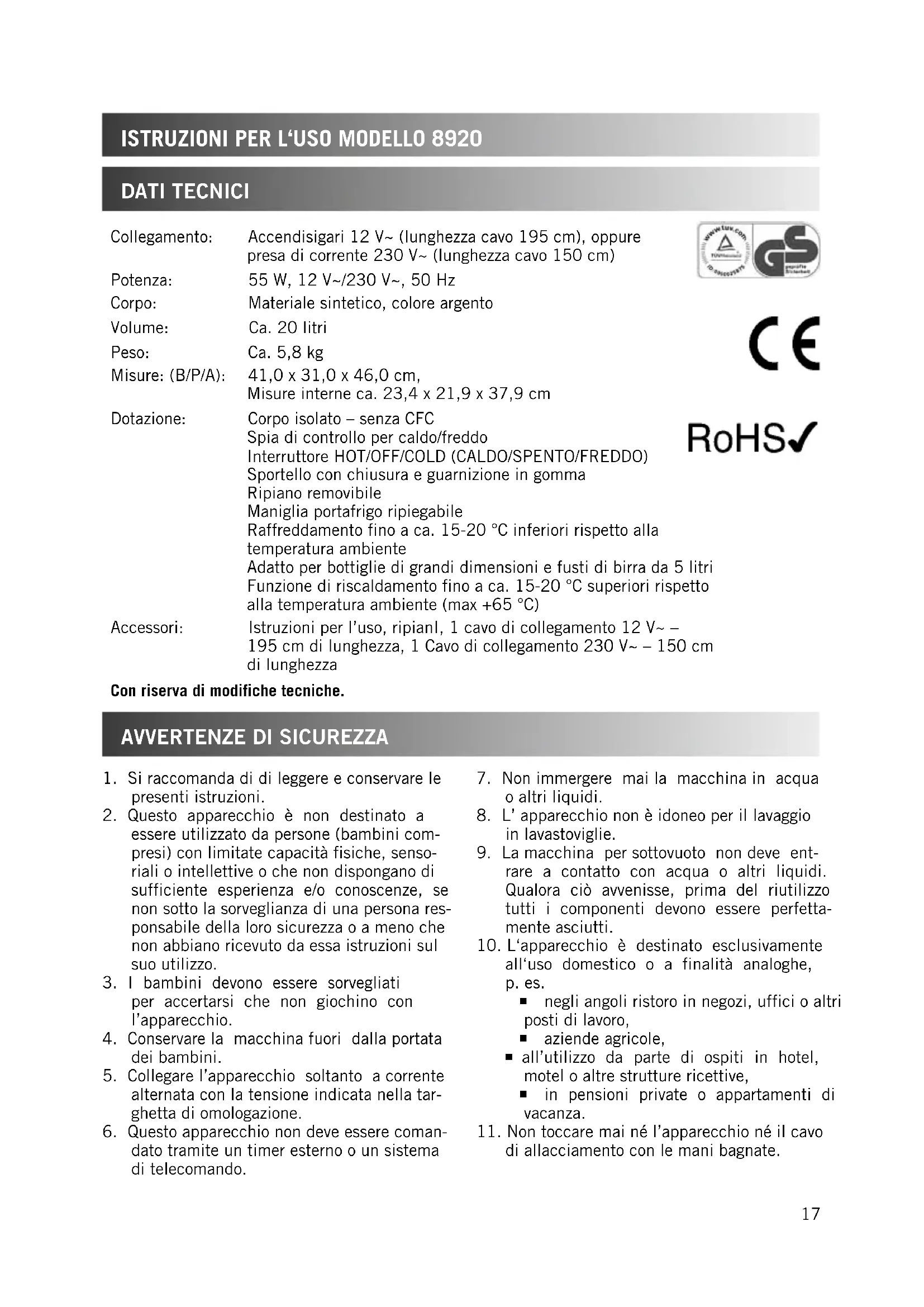 Istruzioni per l'uso Modello 8920