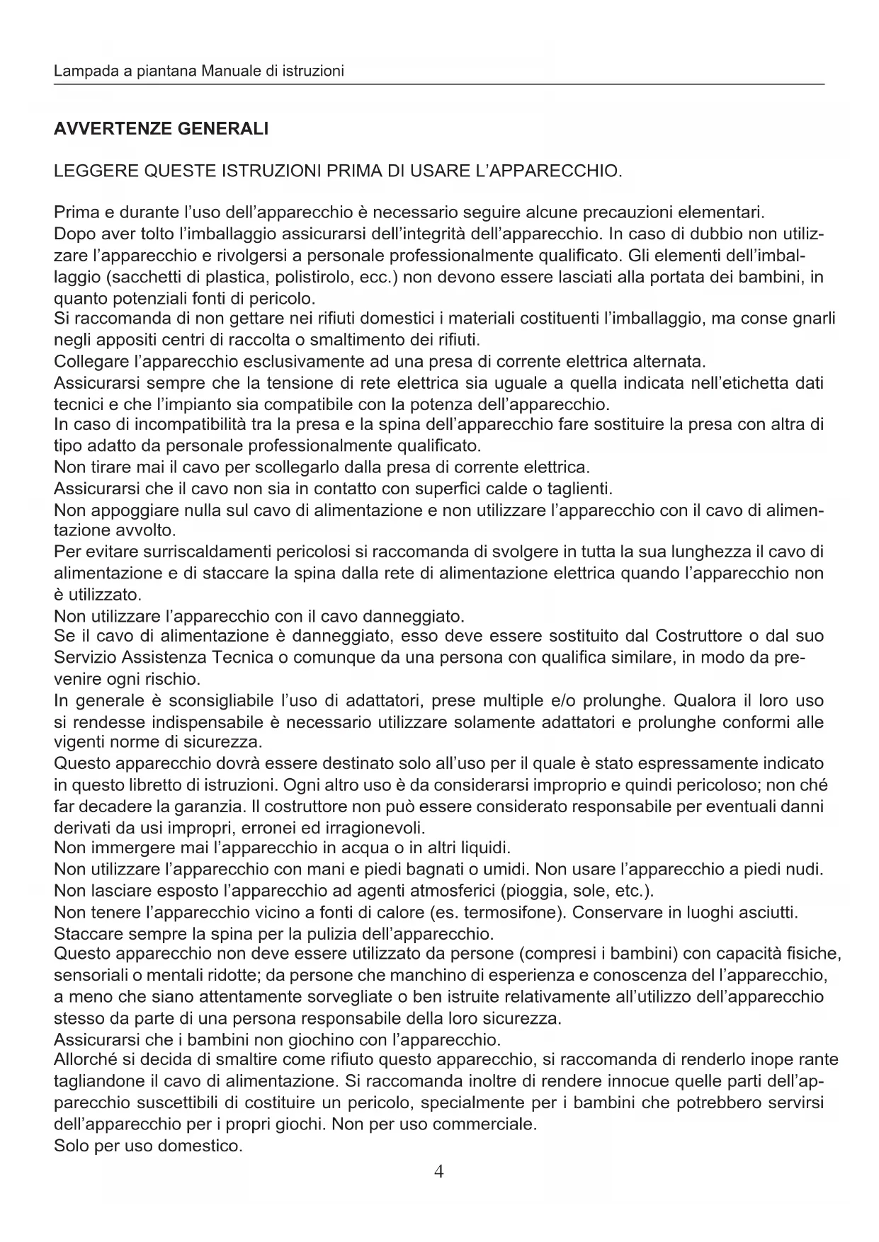 LAMPADA A PIANTANA - MANUALE DI ISTRUZIONI