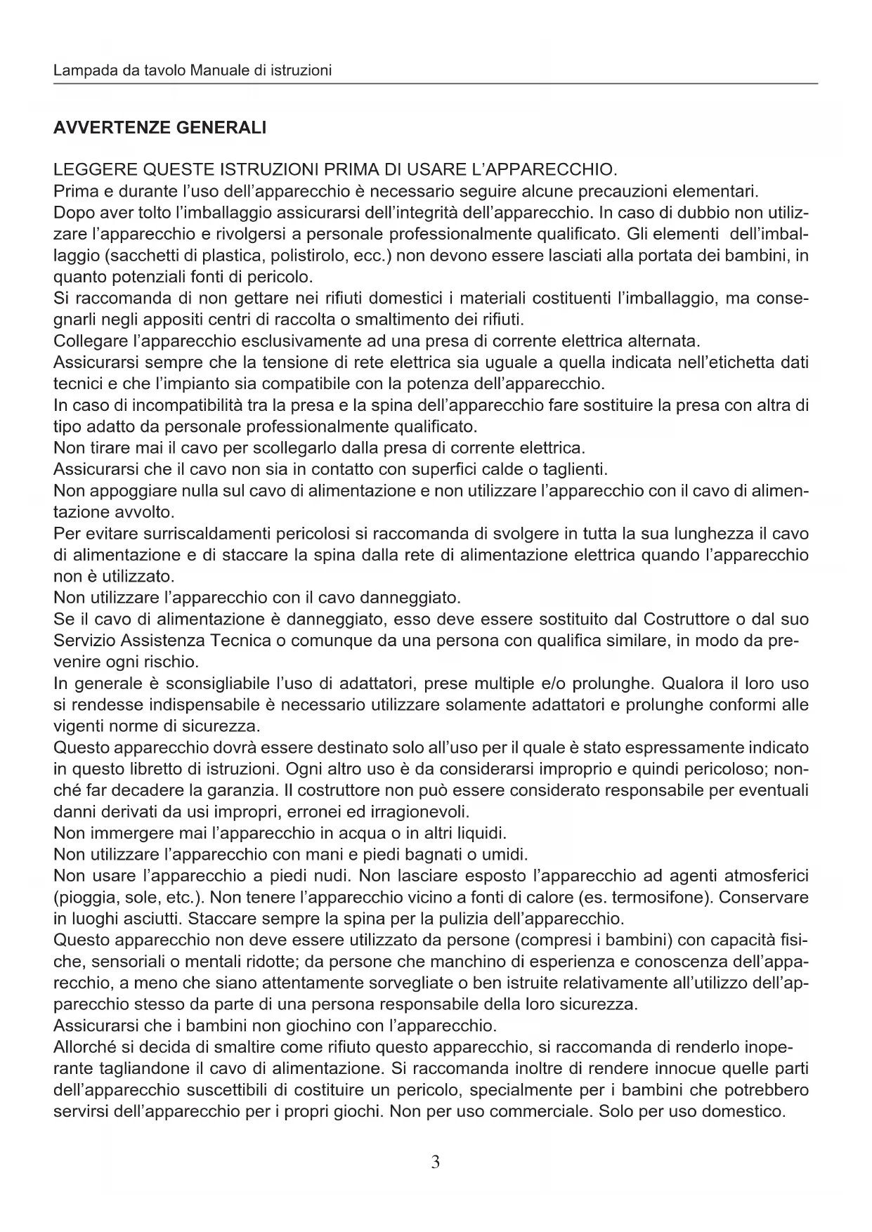 LAMPADA DA TAVOLO - MANUALE DI ISTRUZIONI