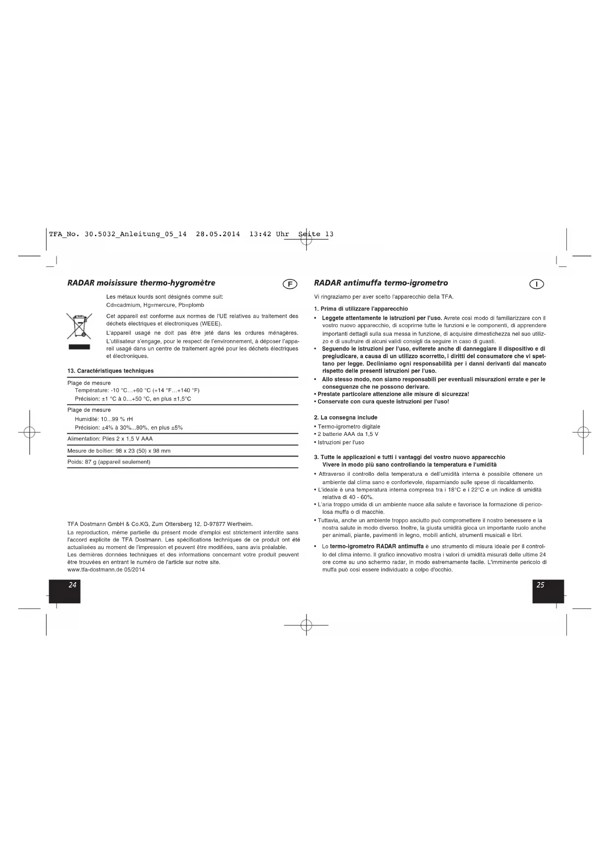 30.5032 - Strumenti di misura TFA - Manuale utente e istruzioni gratuiti