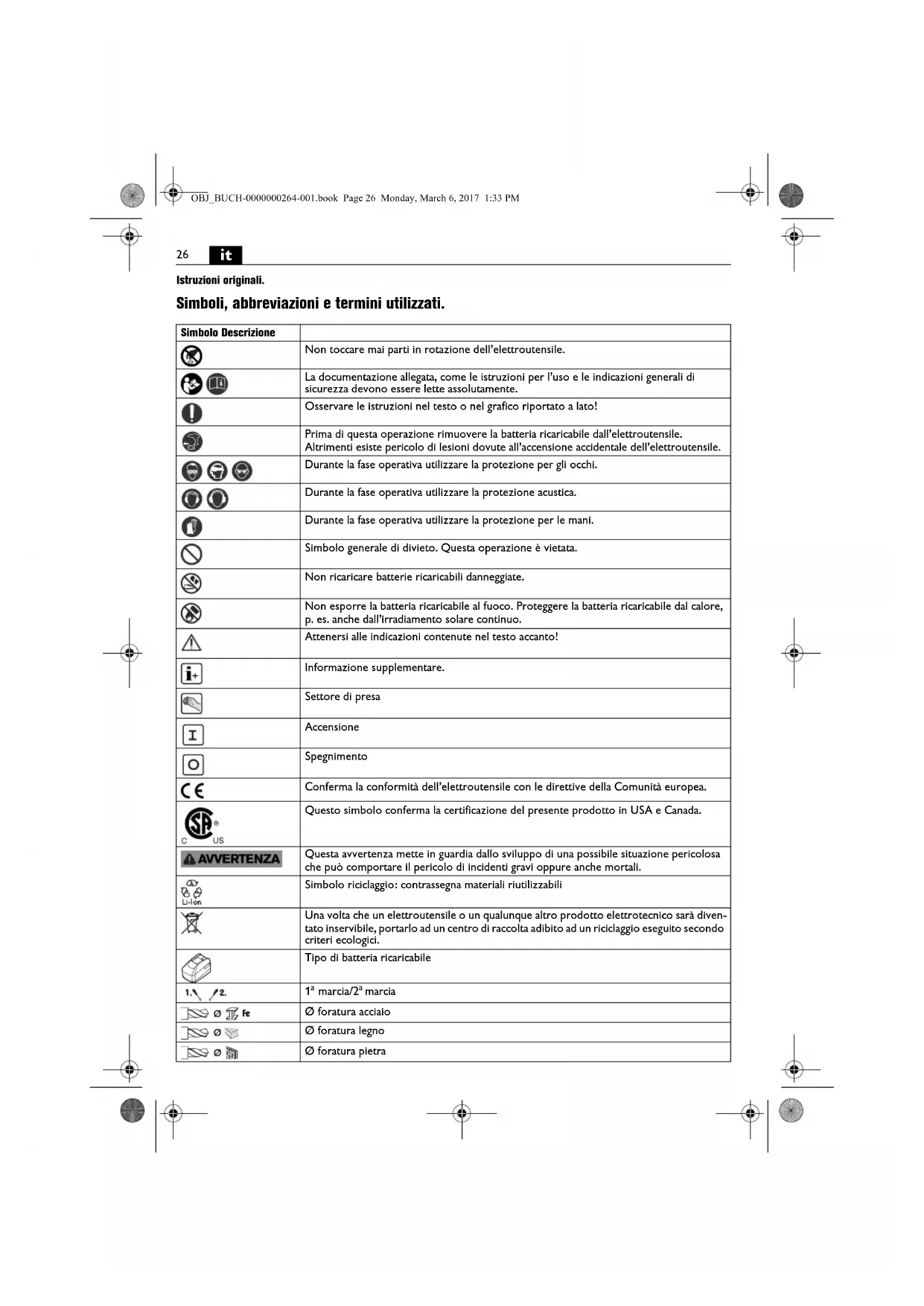 Documentazione tecnica presso: C. & E. Fein GmbH, C-DB_IA, D-73529 Schwäbisch Gmünd