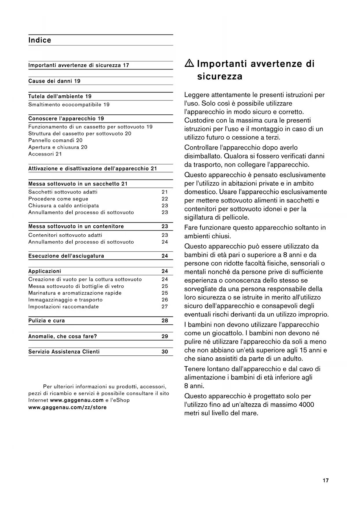 Per ulteriori informazioni su prodotti, accessori, pezzi di ricambio e servizi è possibile consultare il sito Internet www.gaggenau.com e l'eShop www.gaggenau.com/zz/store