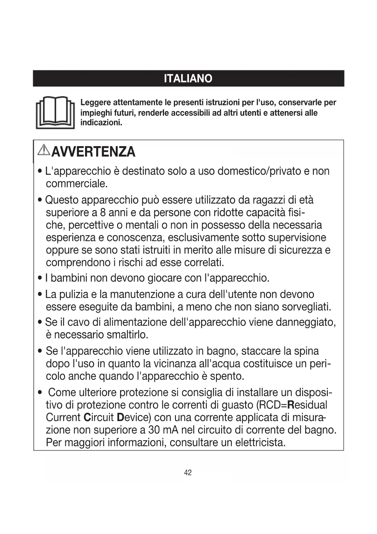 - Questo apparecchio può essere utilizzato da ragazzi di età superiore a 8 anni e da persone con ridotte capacità fisi
