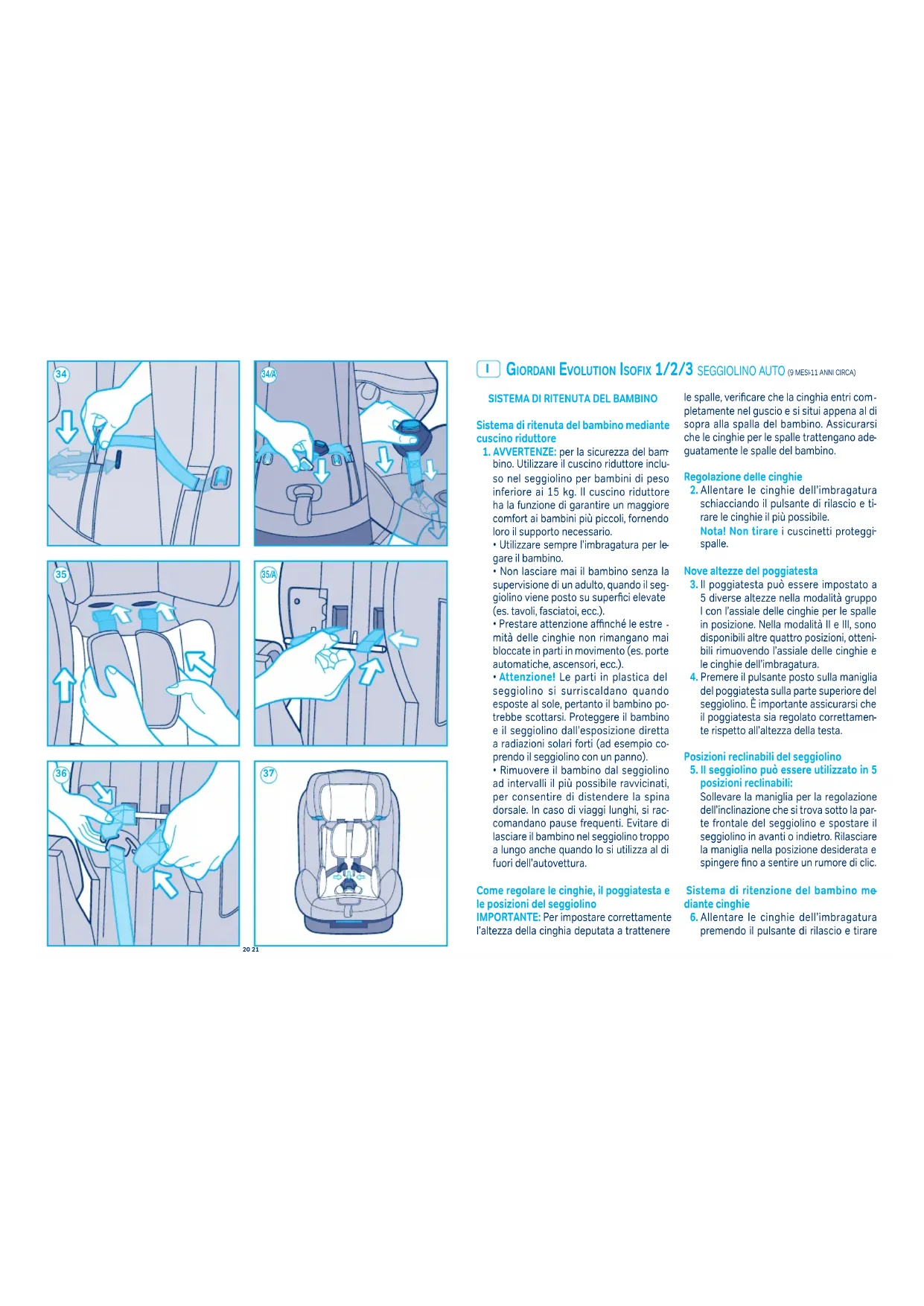 Evolution 123 Isofix - Seggiolino auto Giordani - Manuale utente e istruzioni gratuiti