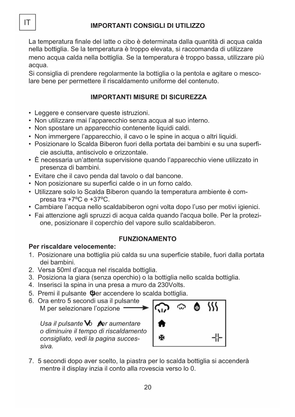 - Posizionare lo Scalda Biberon fuori della portata dei bambini e su una super- cie asciutta, antiscivolo e orizzontale.