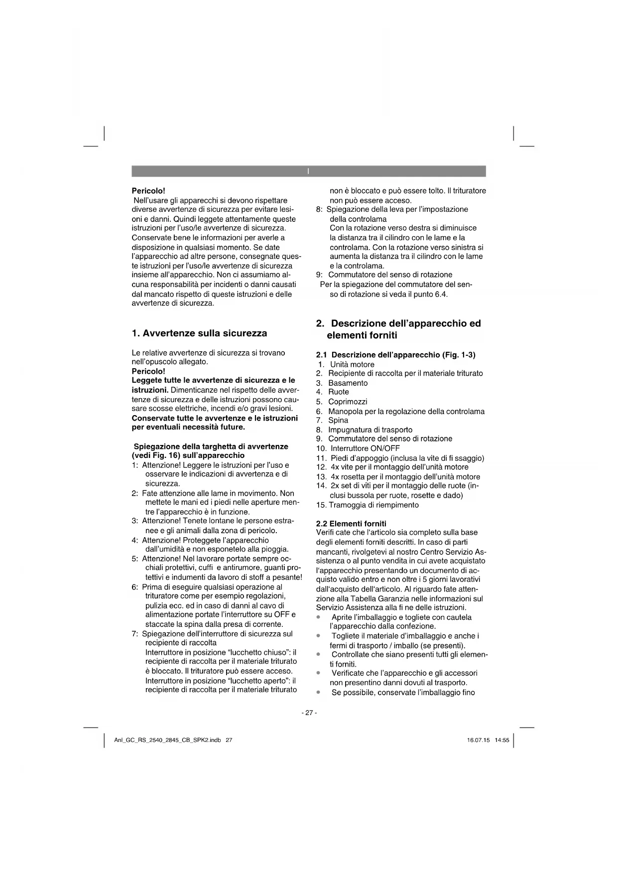 1: Attenzione! Leggere le istruzioni per l'uso e osservare leindicazioni di avventenza e di sicurezza.