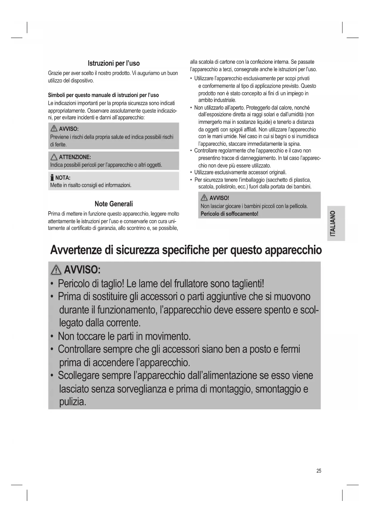 - Non inserire le mani nelle lame per miscelazione.27 Disimballaggio dell’apparecchio