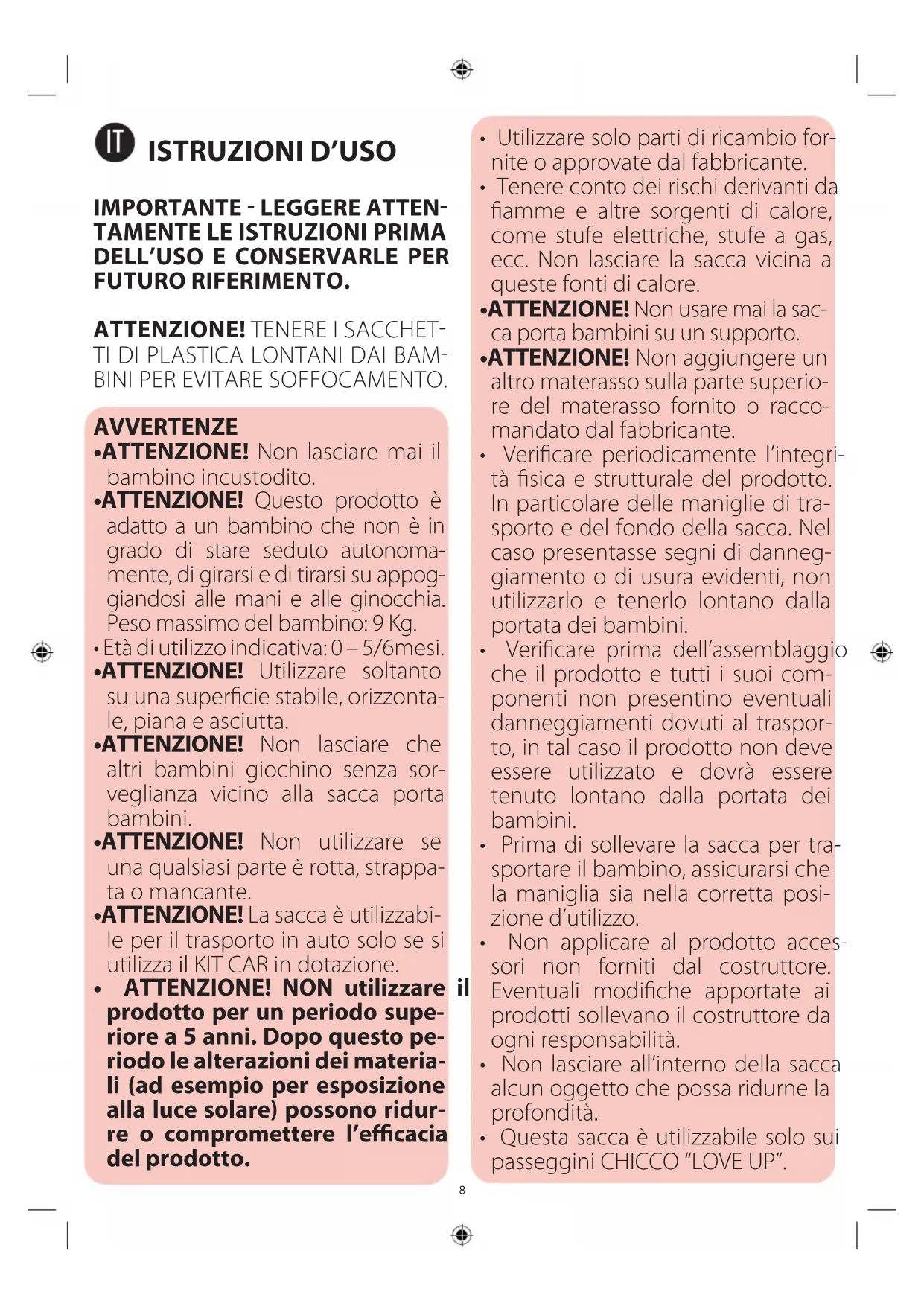 - Questa sacca è utilizzabile solo sui passeggini CHICCO “LOVE UP”.8