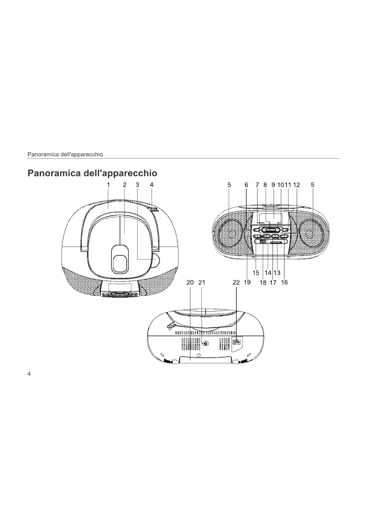 - Un volume troppo alto, in particolare se si usano le cuffie, può provocare danni all'udito.Descrizione dell'apparecchio