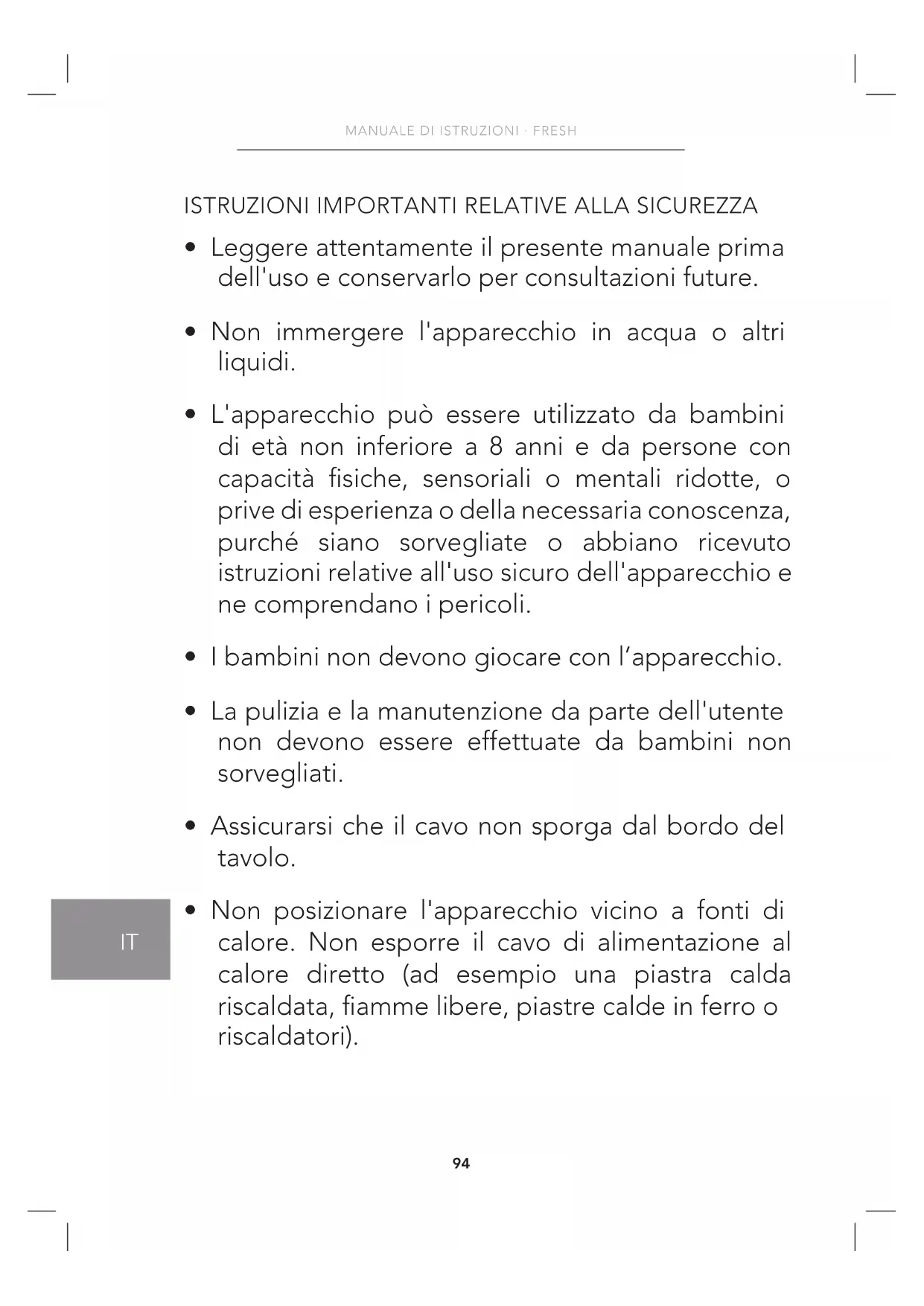 - I bambini non devono giocare con l’apparecchio.