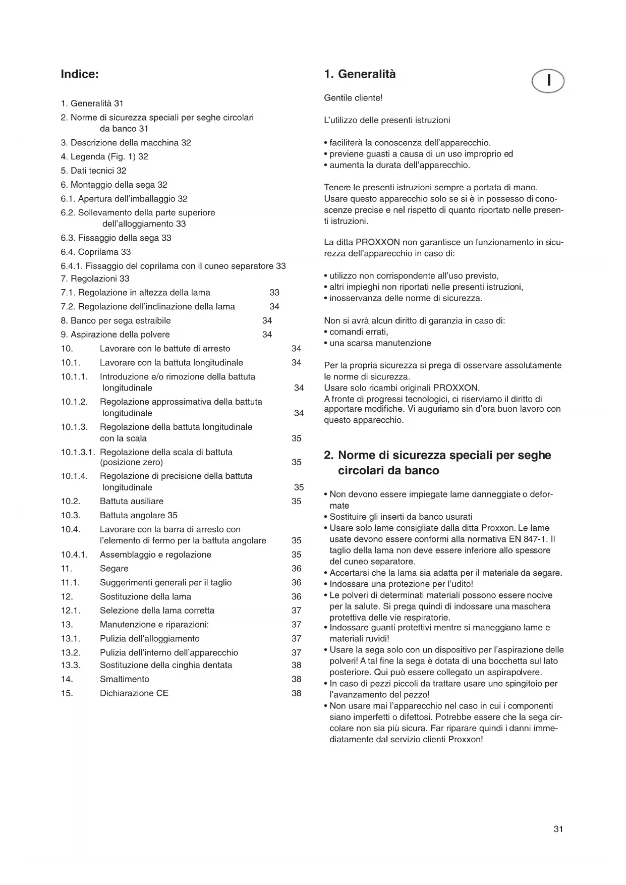 - Norme di sicurezza speciali per seghe circolari da lavoro 31