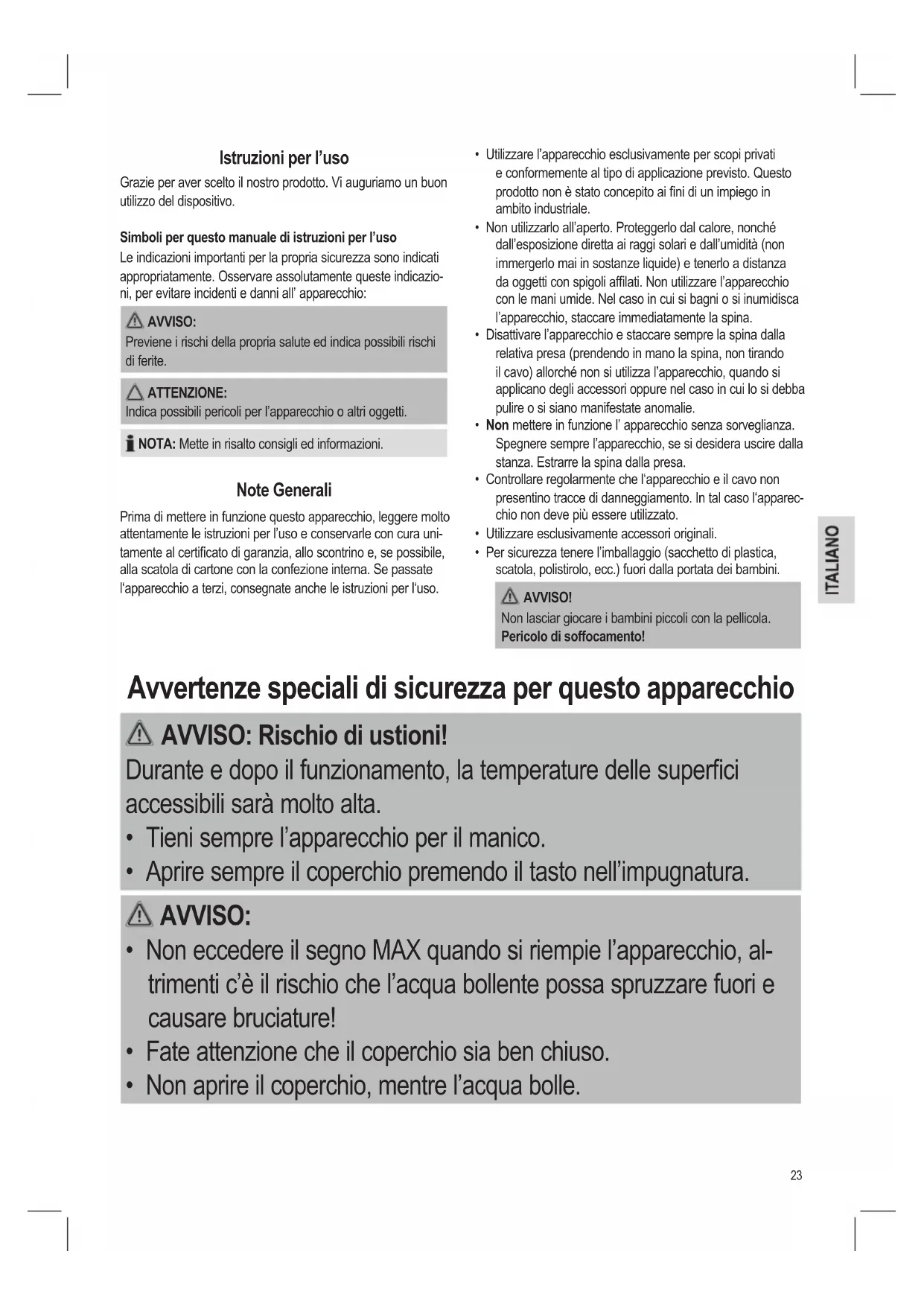 - Non aprire il coperchio, mentre l’acqua bolle.24