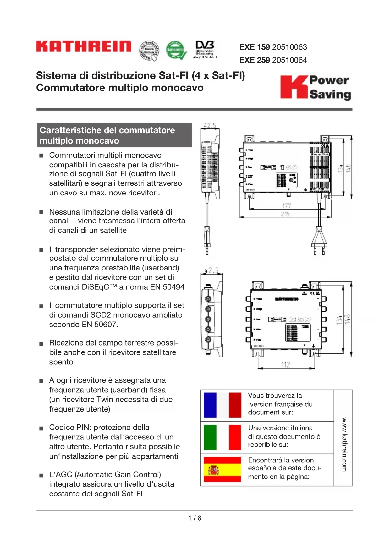 EXE 259 - Ripartitore satellitare KATHREIN - Manuale utente e istruzioni gratuiti