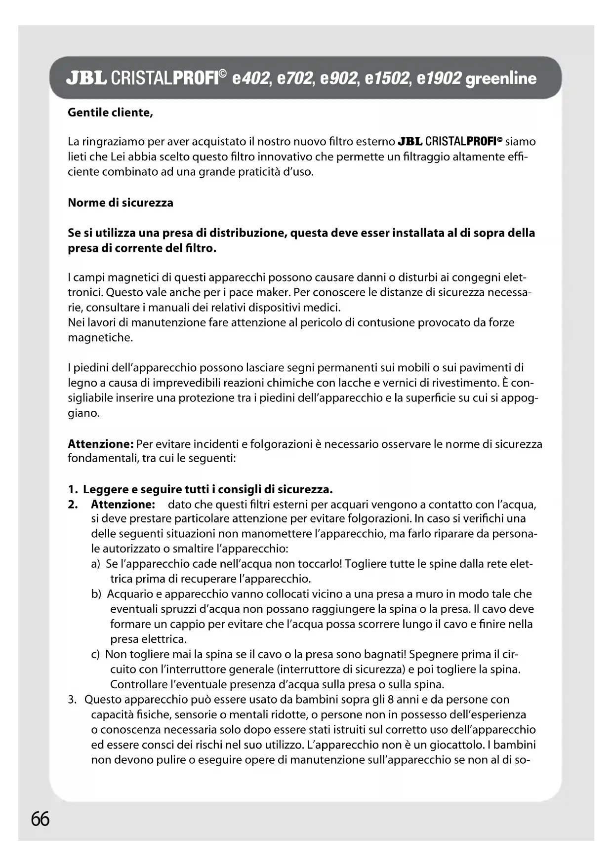 e402, e702, e902, e1502, e1902 greenline Gentile cliente, La ringraziamo per aver acquistato il nostro nuovo filtro esterno J BL CRISTALPROFI