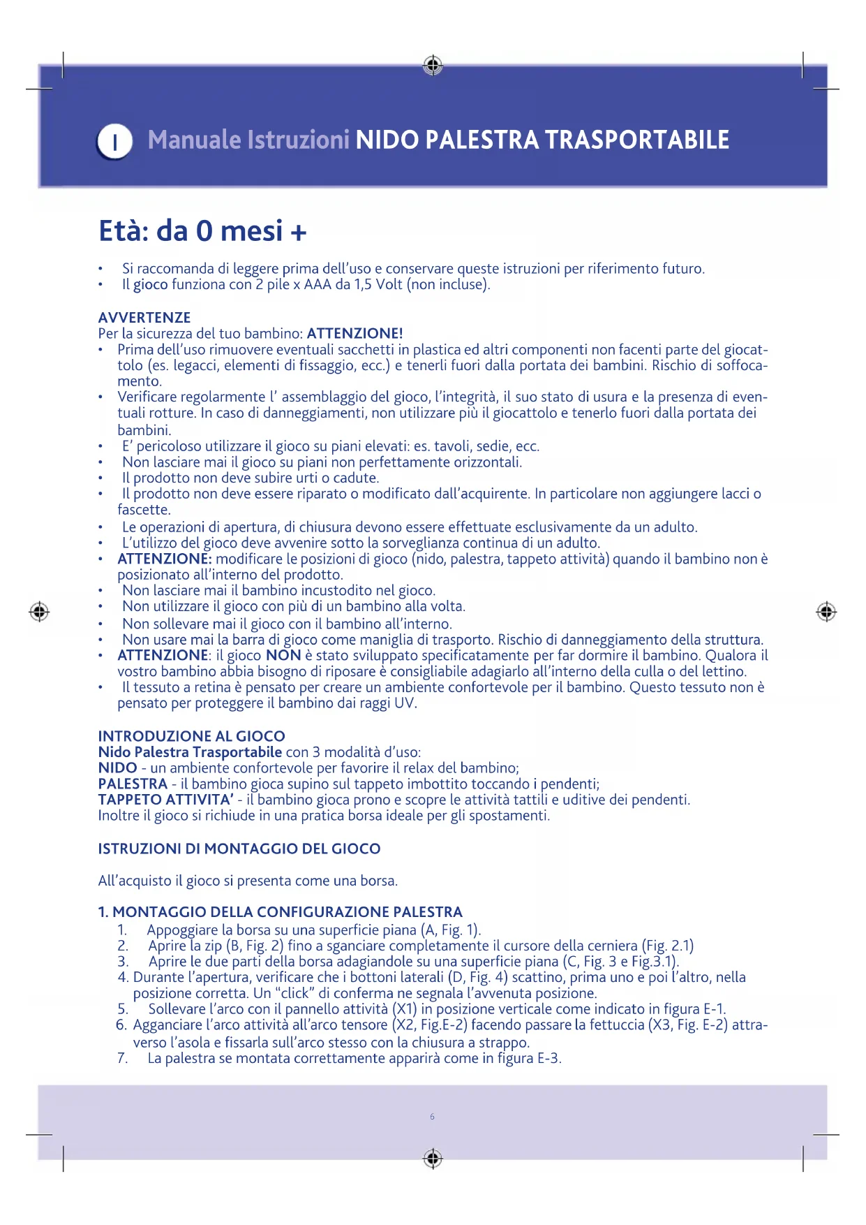 - ATTENZIONE:modicareleposizionidigioco(nido,palestra,tappetoattività)quandoilbambinononè posizionatoall’internodelprodotto.