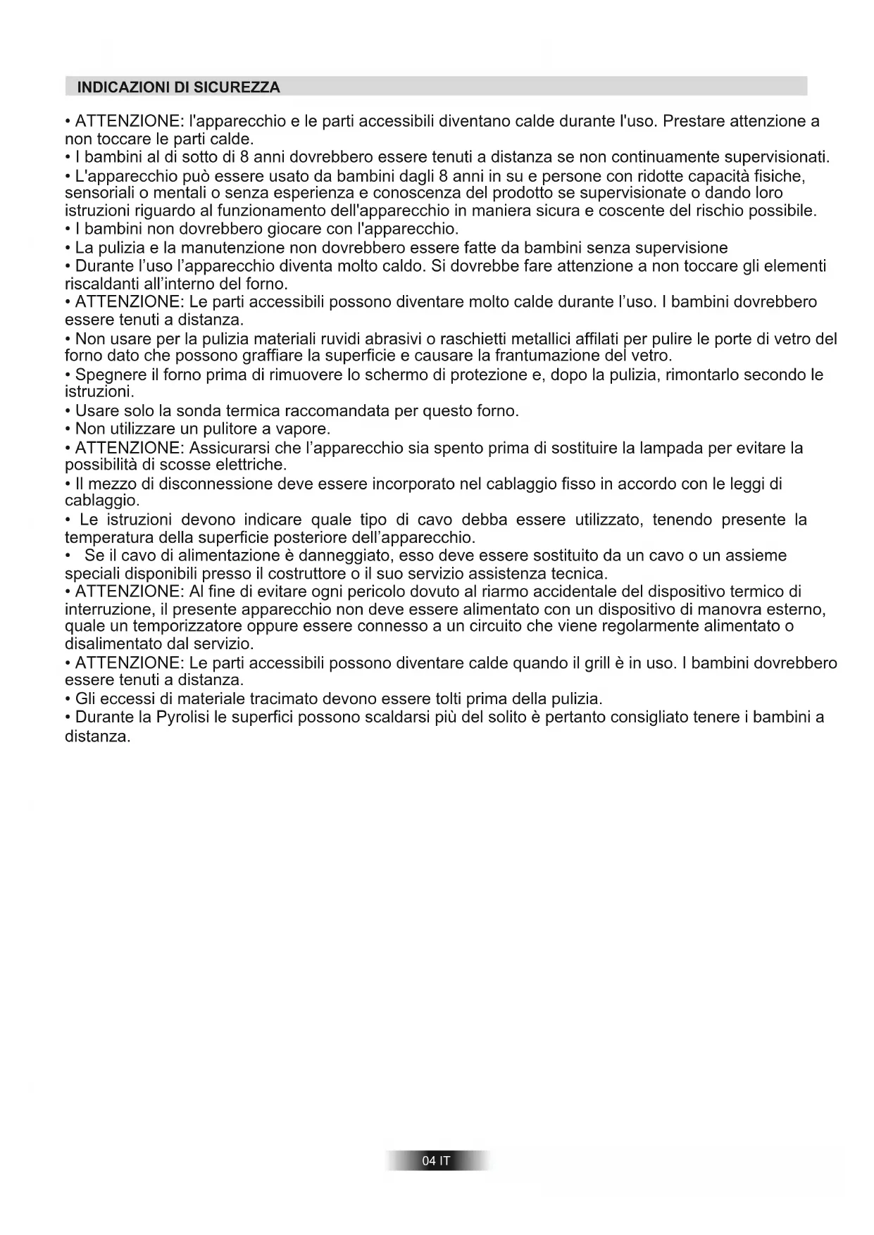 - ATTENZIONE: Le parti accessibili possono diventare molto calde durante l’uso. I bambini dovrebbero essere tenuti a distanza.