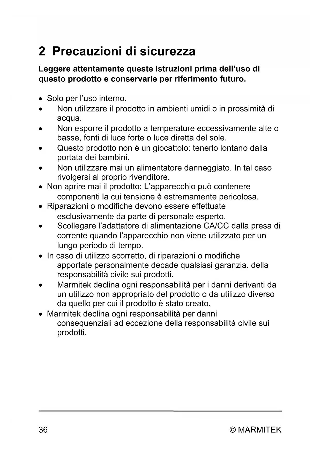 Marmitek declina agli responsabilità per i danni derivanti da un utilizzo non appropriato del prodotto o da utilizzo diverso da quello per cui il prodotto è stato creato. - Marmitek declina agli responsabilità per danni consequences ad eccezione della responsabilità civile sui prodotti.