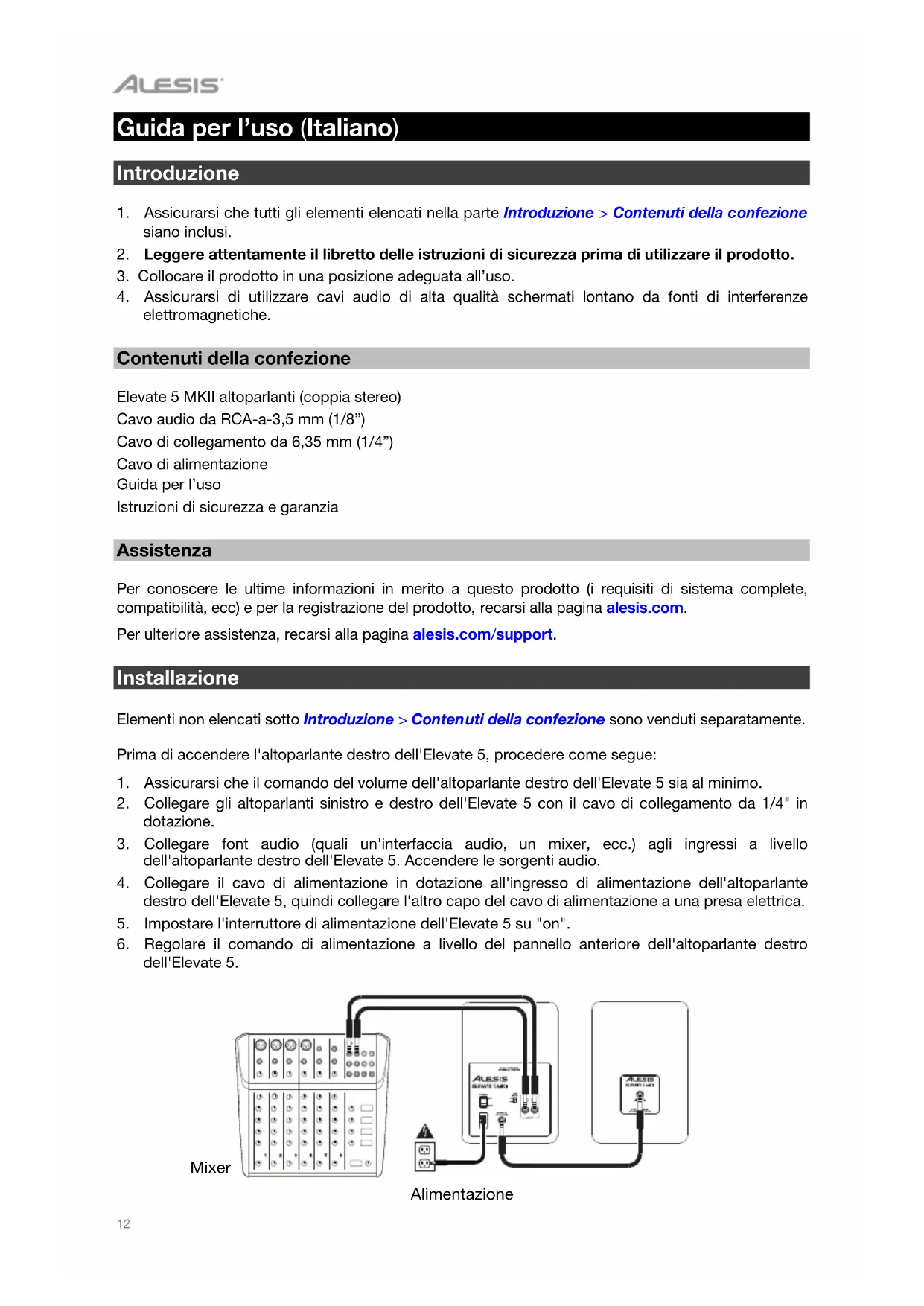 Elevate 5 MKII - Altoparlante ALESIS - Manuale utente e istruzioni gratuiti