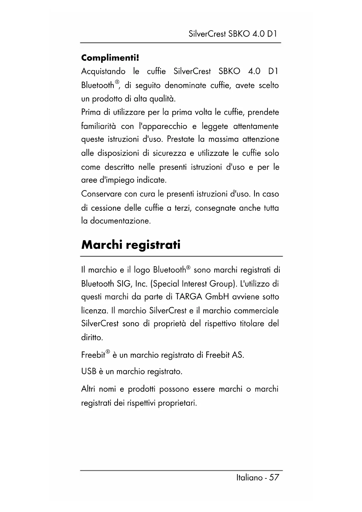 è un marchio registrato di Freebit AS. USB è un marchio registrato. Altri nomi e prodotti possono essere marchi o marchi registrati dei rispettivi proprietari.SilverCrest SBKO 4.0 D1