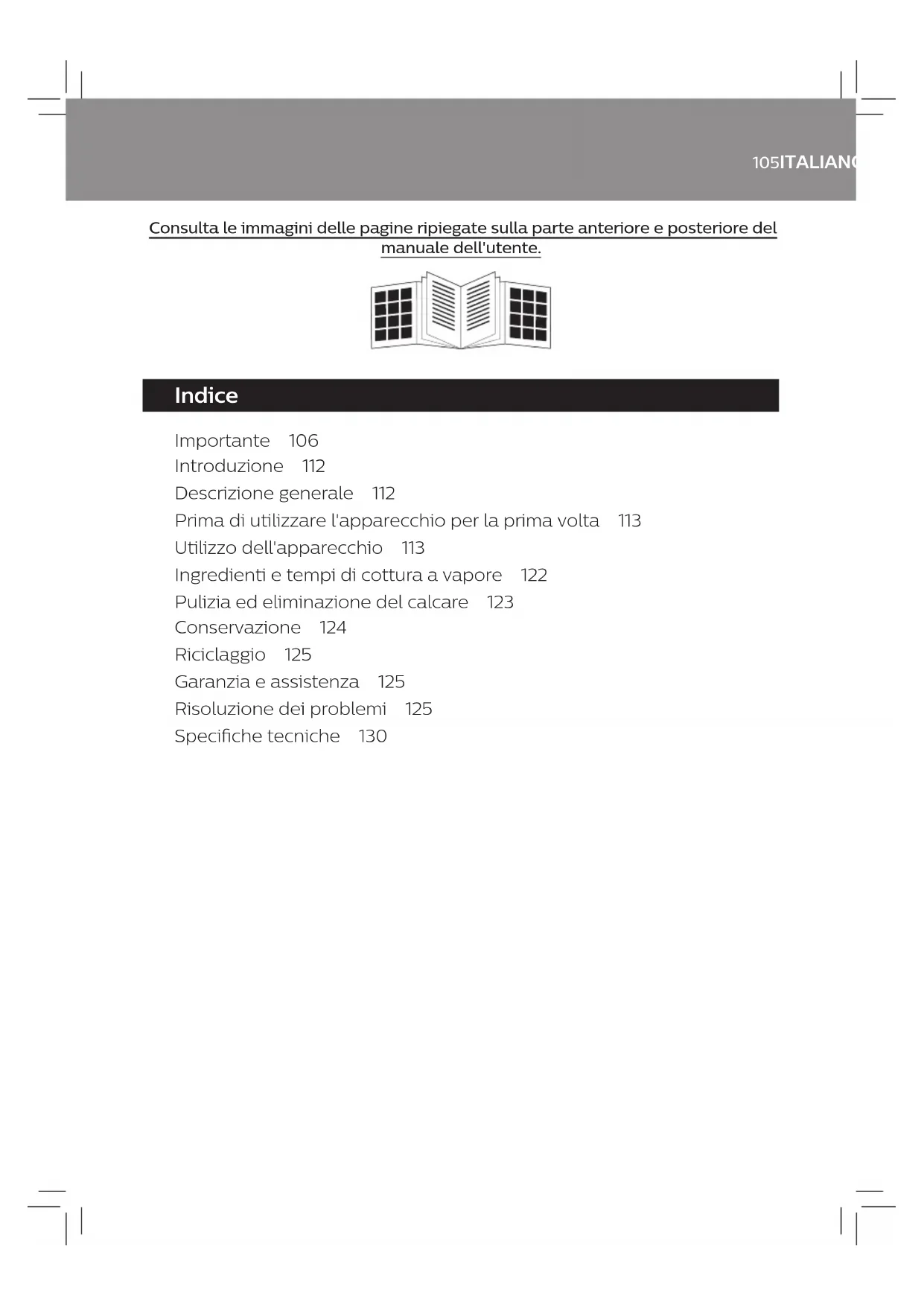 - I tempi di cottura a vapore possono variare. I tempi approssimativi sono calcolati su ingredienti tagliati in cubetti non superiori al 1 cm e del peso complessivo di 250 g.123ITALIANO Pulizia ed eliminazione del calcare Pulizia Attenzione