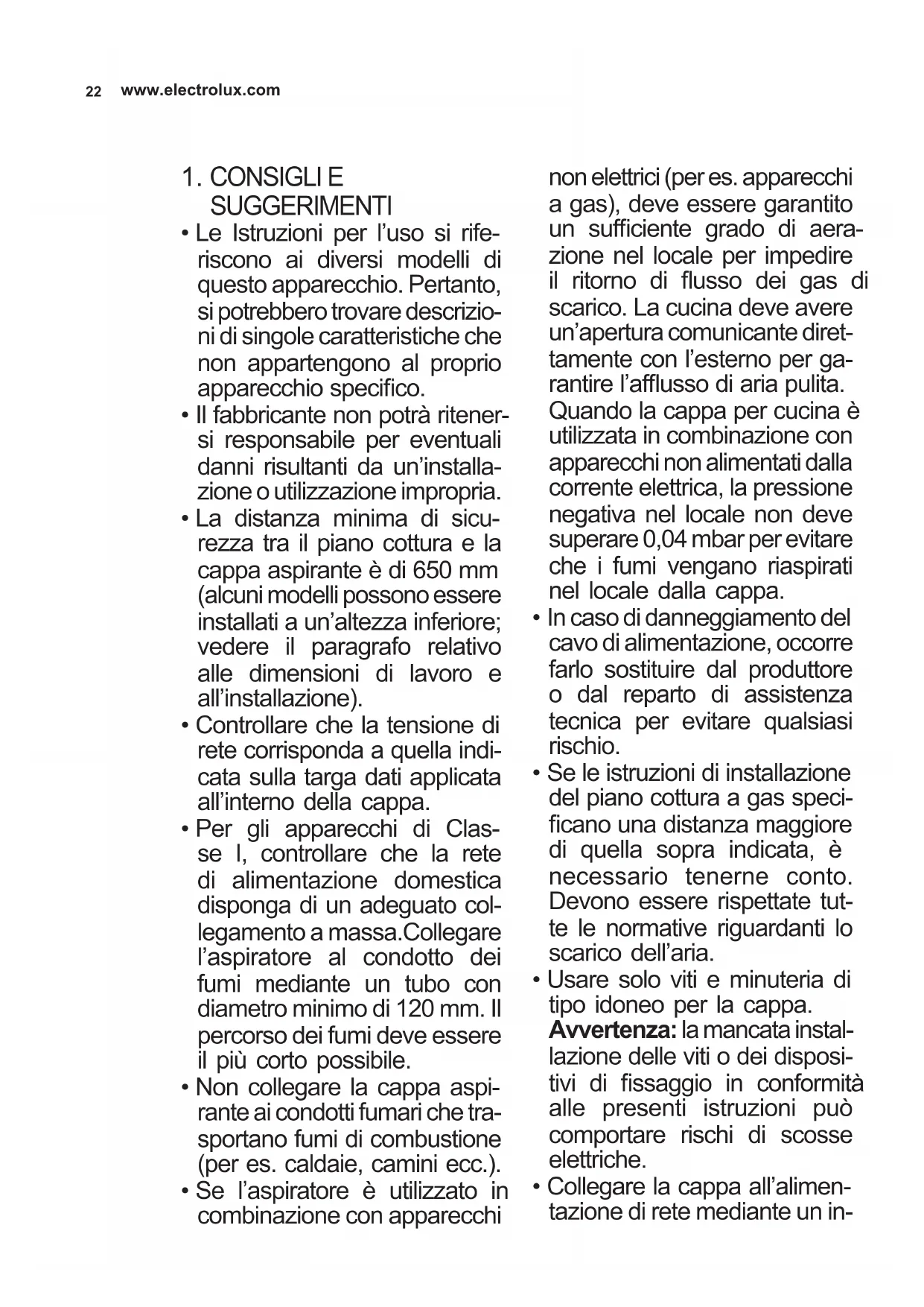 - Collegare la cappa all’alimen- tazione di rete mediante un in-23 ITALIAN terruttore bipolare con distanza tra i contatti di almeno 3 mm.