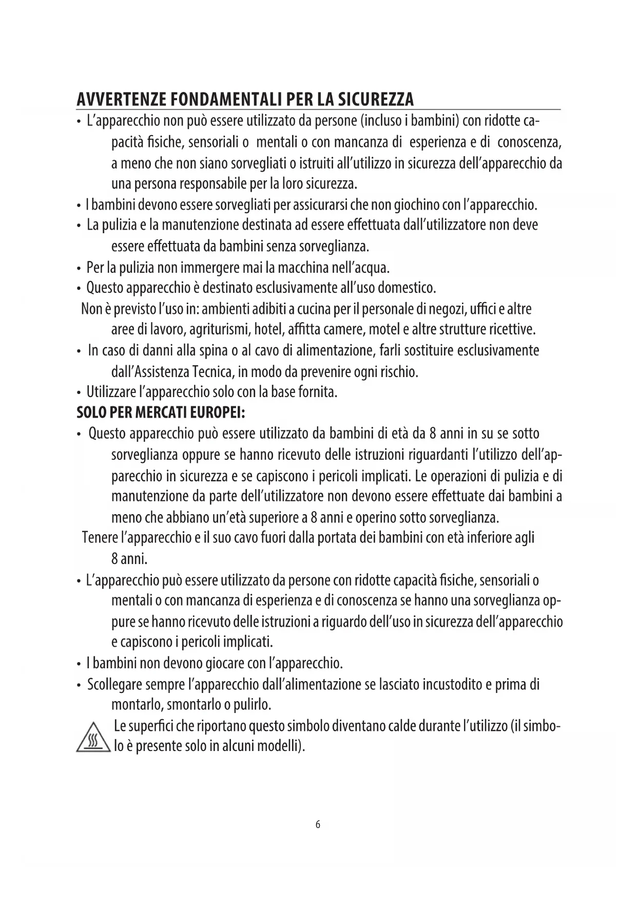 - Scollegare sempre l’apparecchio dall’alimentazione se lasciato incustodito e prima di montarlo, smontarlo o pulirlo. Le superci che riportano questo simbolo diventano calde durante l’utilizzo (il simbo- lo è presente solo in alcuni modelli).7