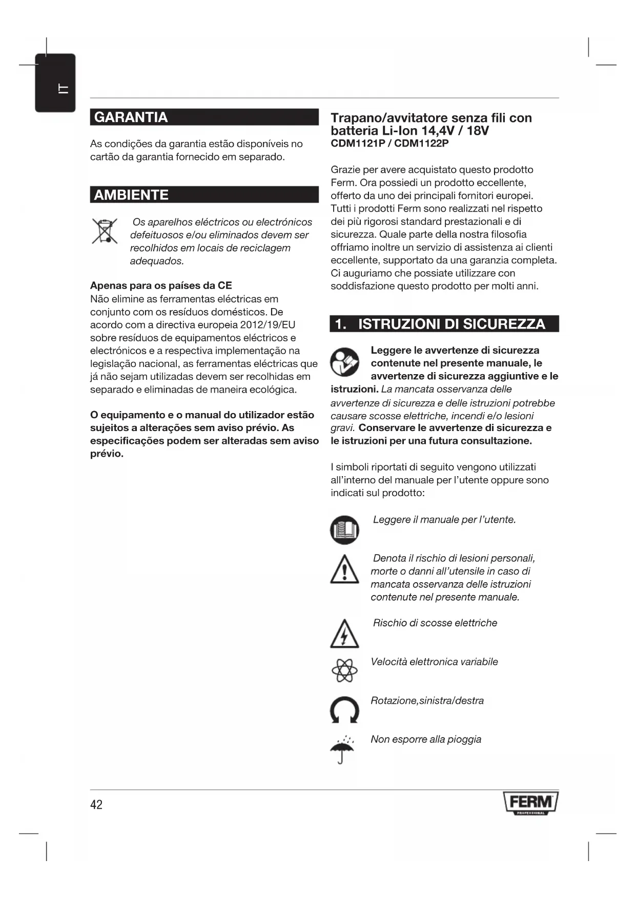 MANUALE UTENTE CDM1122P Ferm