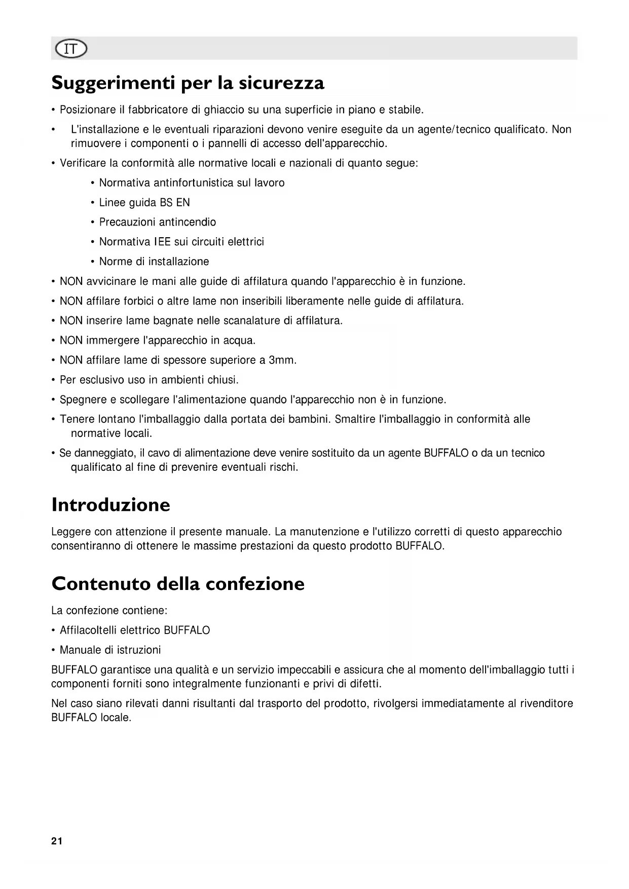 G310 - Affilacoltelli BUFFALO - Manuale utente e istruzioni gratuiti