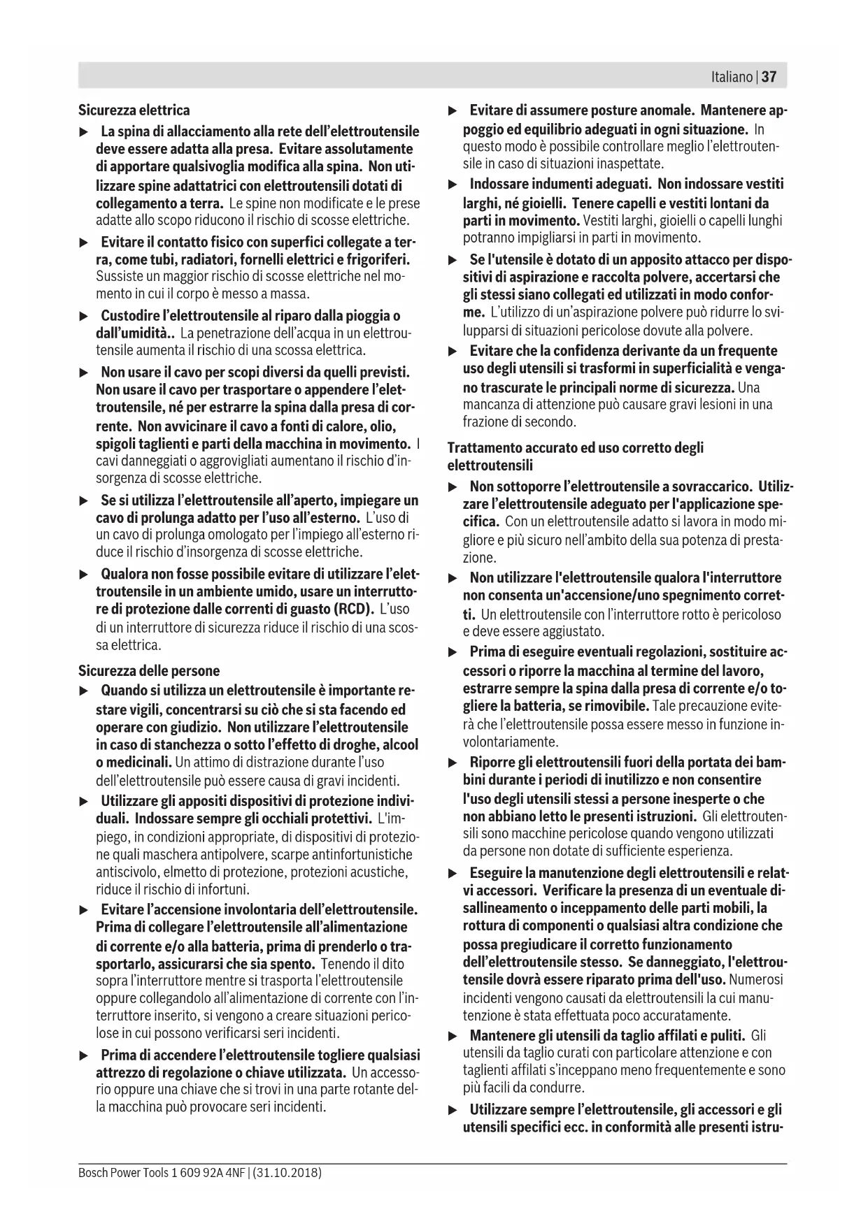 e per lo stoc- caggio °C -20... +50 -20... +50 Batterie consigliate GBA 12V ... GBA 10,8V ... GBA 12V ... GBA 10,8V ... Caricabatterie consigliati GAL 12.. CV AL 11.. CV GAL 12V-.. GAX 18V-30 GAL 12.. CV AL 11.. CV GAL 12V-.. GAX 18V-30 A) in funzione della batteria utilizzata B) Prestazioni ridotte in caso di temperature <0 °C Informazioni su rumorosità e vibrazioni Valori di emissione acustica rilevati conformemente a EN 60745-2-1/EN 62841-2-2. Il livello di pressione acustica ponderato A dell’elettroutensi- le è tipicamente di 72 dB(A). Grado d’incertezza K = 3 dB. Il livello di rumorosità durante il lavoro può superare gli 80 dB(A). Bosch Power Tools 1 609 92A 4NF | (31.10.2018)40 | Italiano Indossare protezioni acustiche! Valori di oscillazione totali a