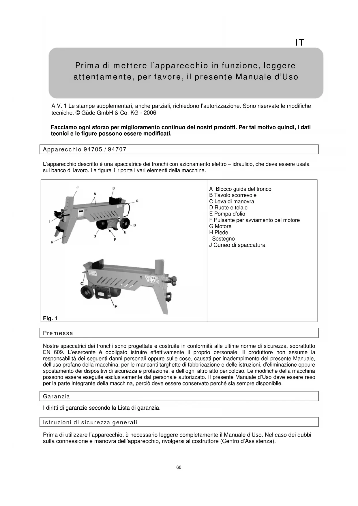 W5207TW - Spaccalegna Güde - Manuale utente e istruzioni gratuiti
